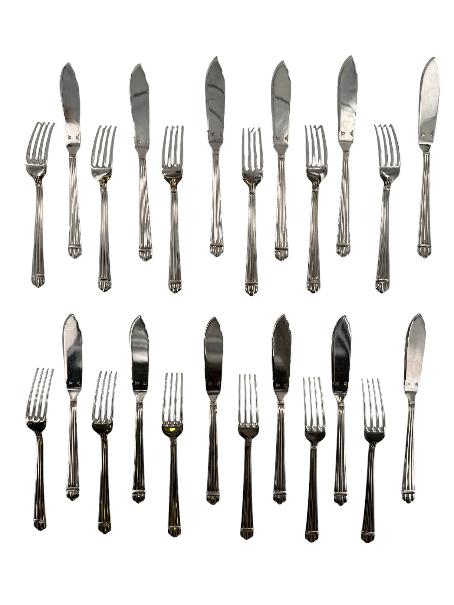 Il se compose de 12 fourchettes à poisson et 12 couteaux à poisson.