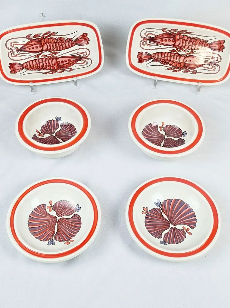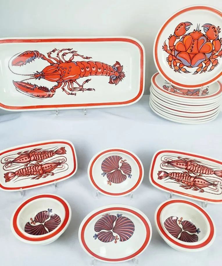 Service en céramique à décor de coquillages et crustacés, Lunéville, 19 pièces.