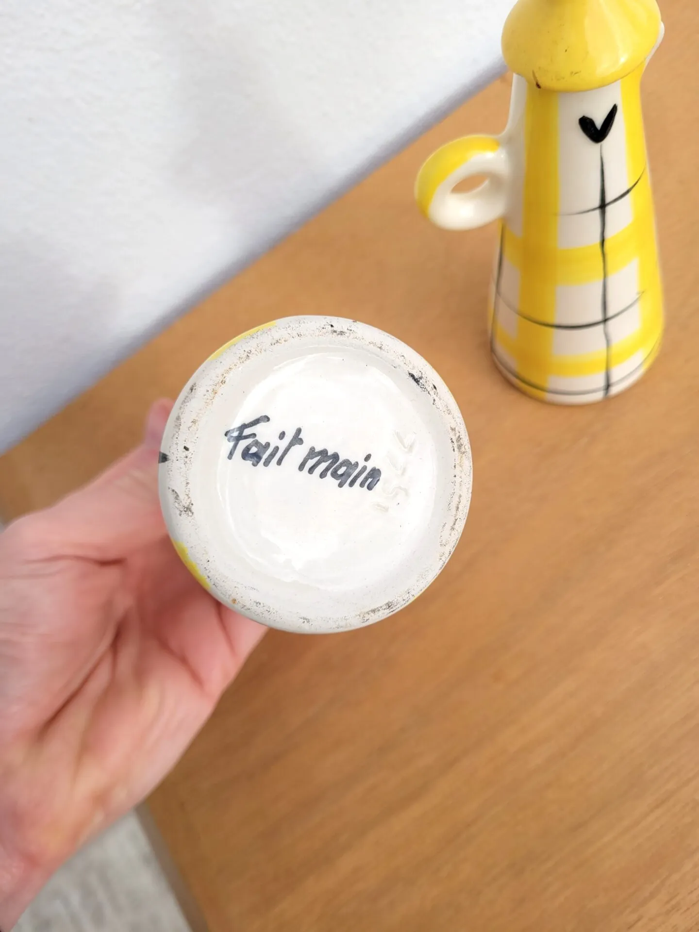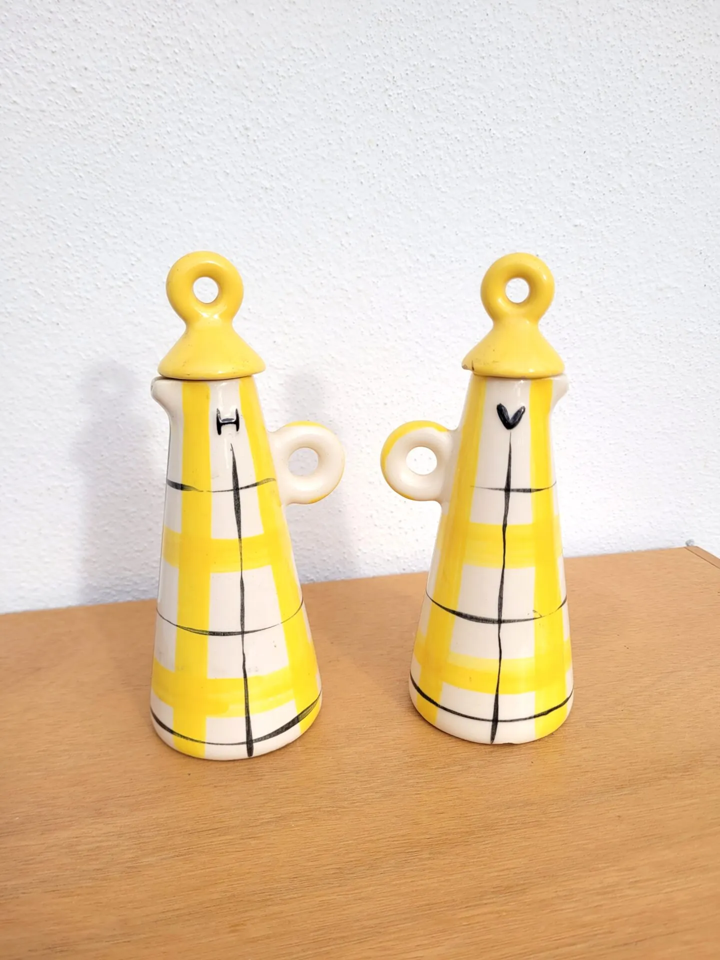 Ce duo évoque l’esthétique joyeuse et artisanale d’après-guerre.