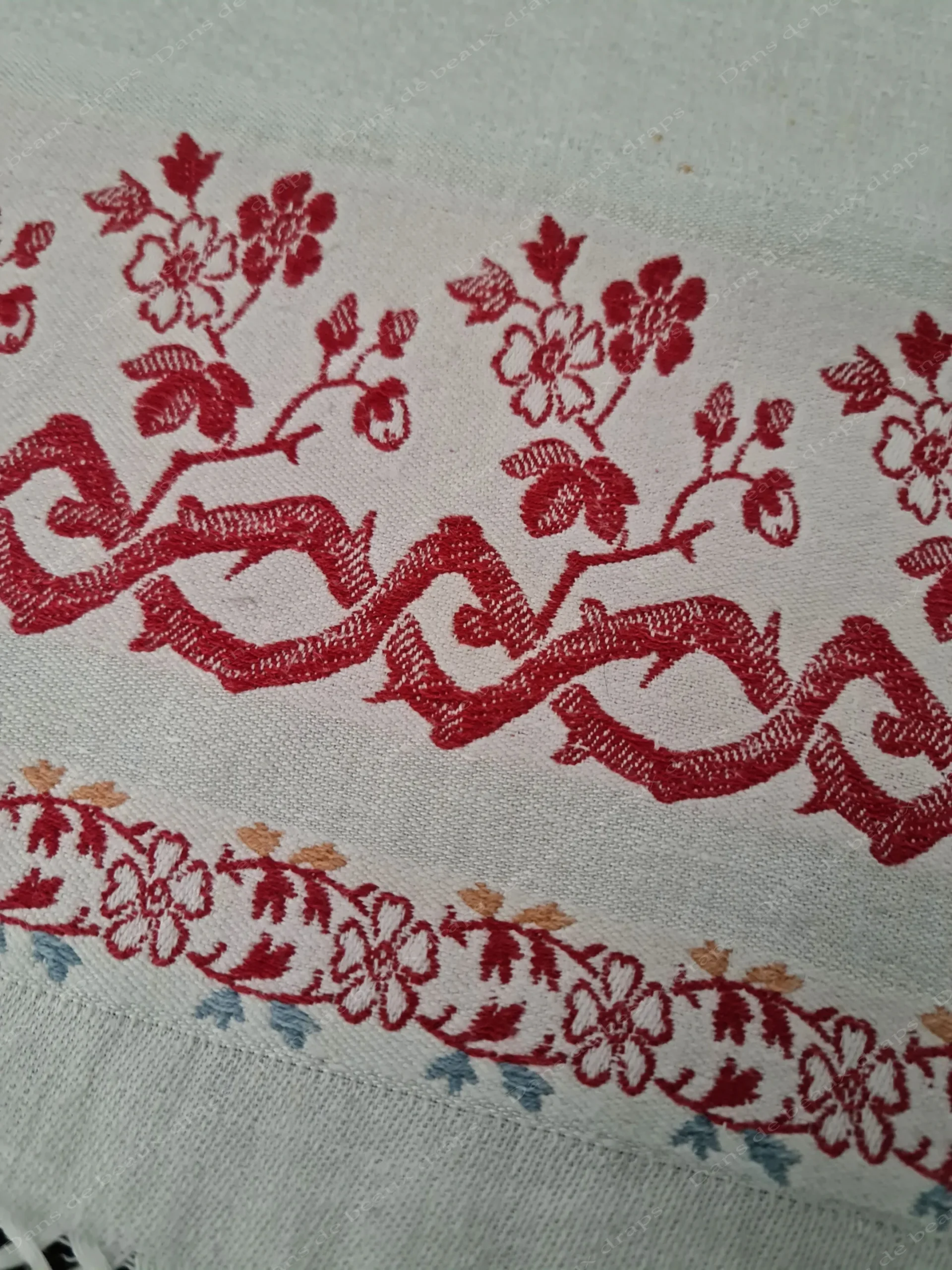 Très belle qualité de damassé de lin,tissage fin,couleur bien blanche.