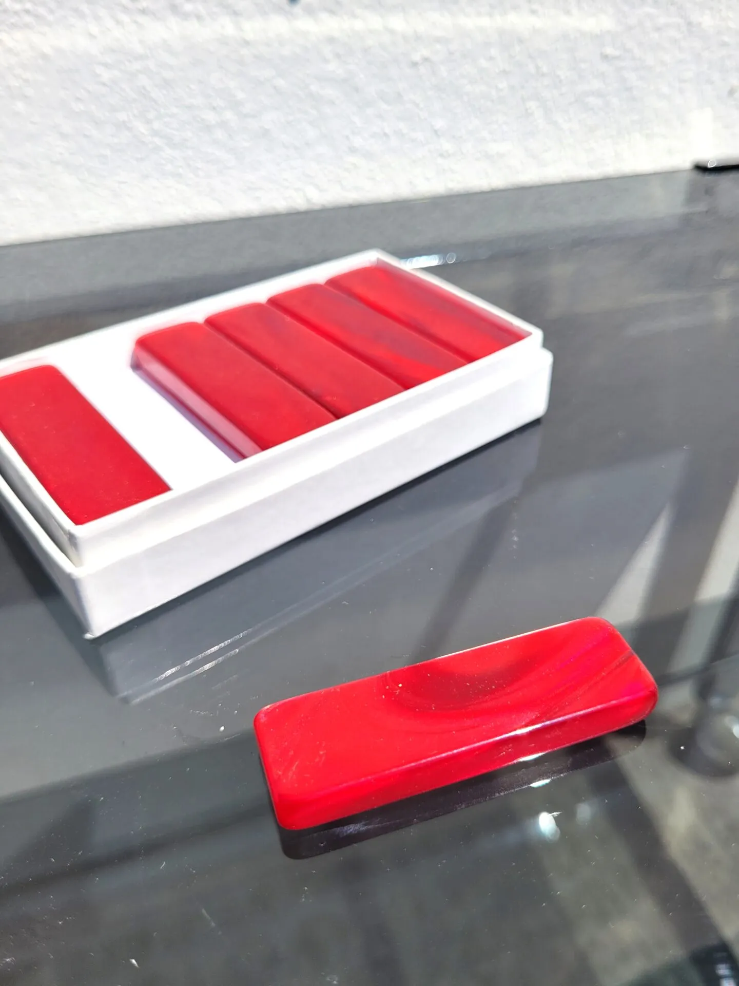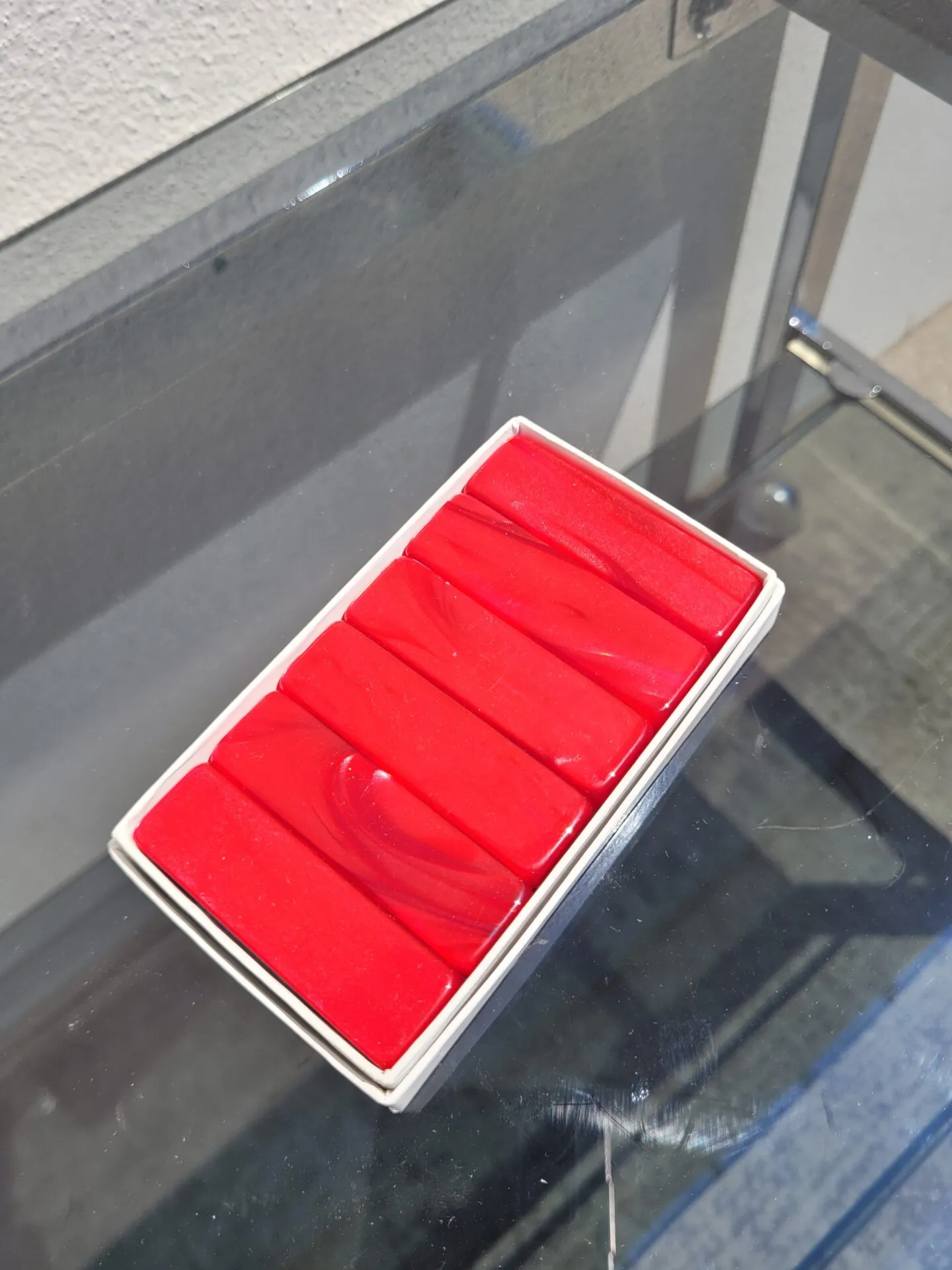 En plastique avec un effet nacré rouge