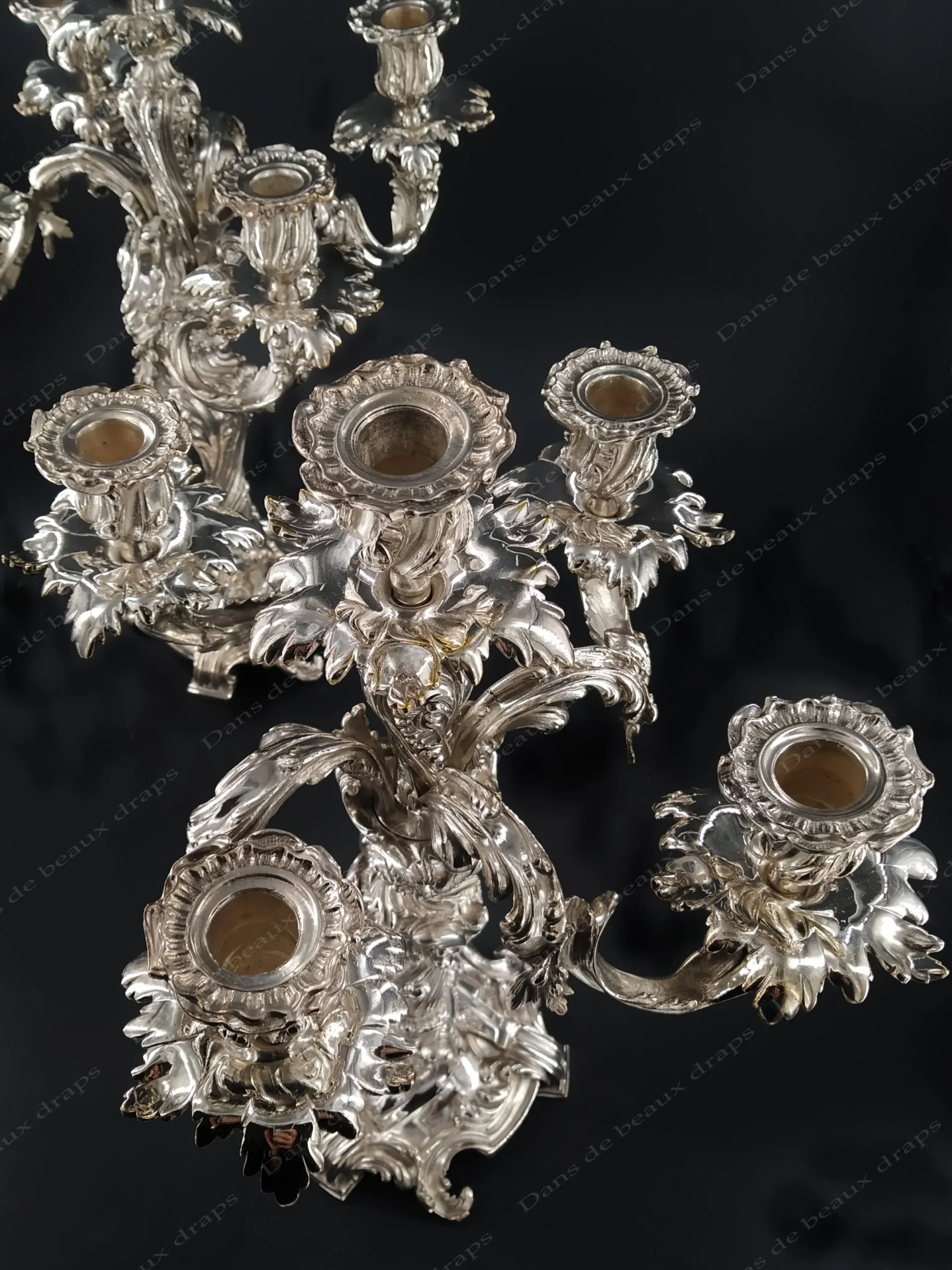 Splendide paire de candélabres en métal argenté fin XIX ème de forme rocaille.