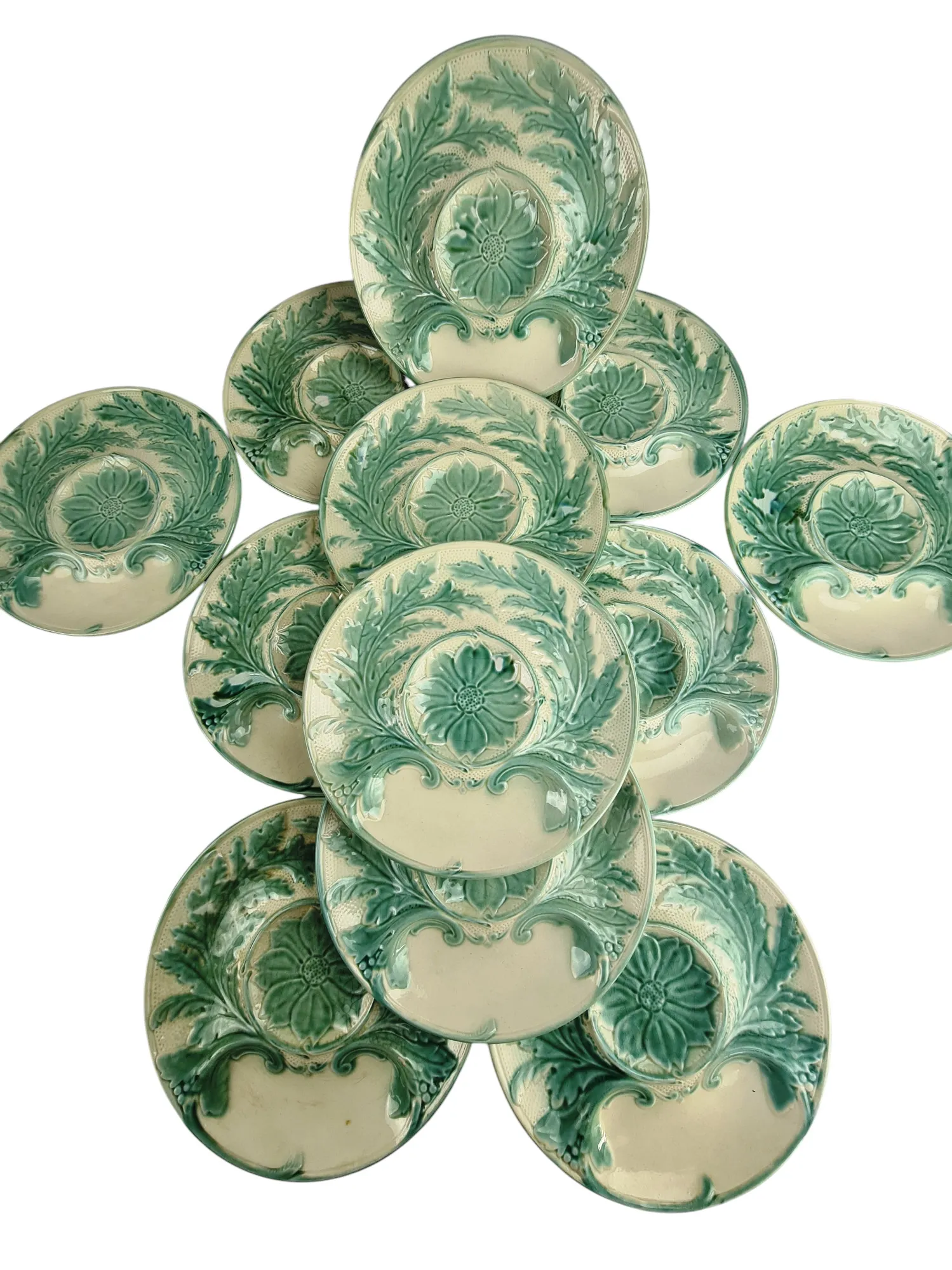 Suite de 12 assiettes à artichaut en faïence de Gien, XXème.