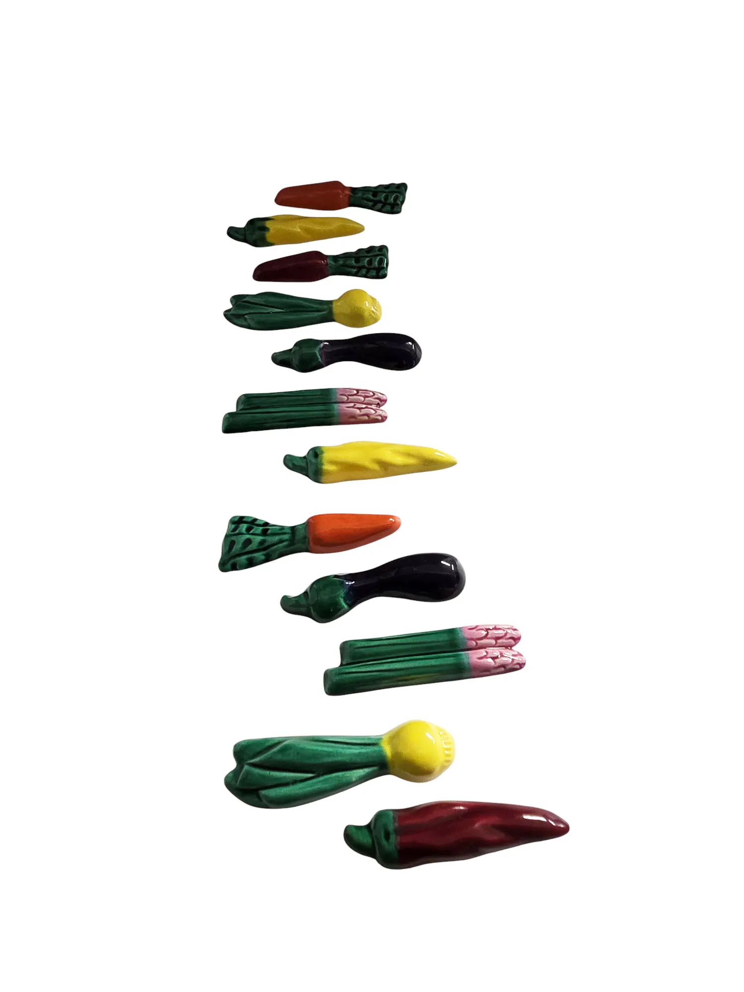 Suite de 12 porte-couteaux en céramique de Vallauris à décor de légumes.