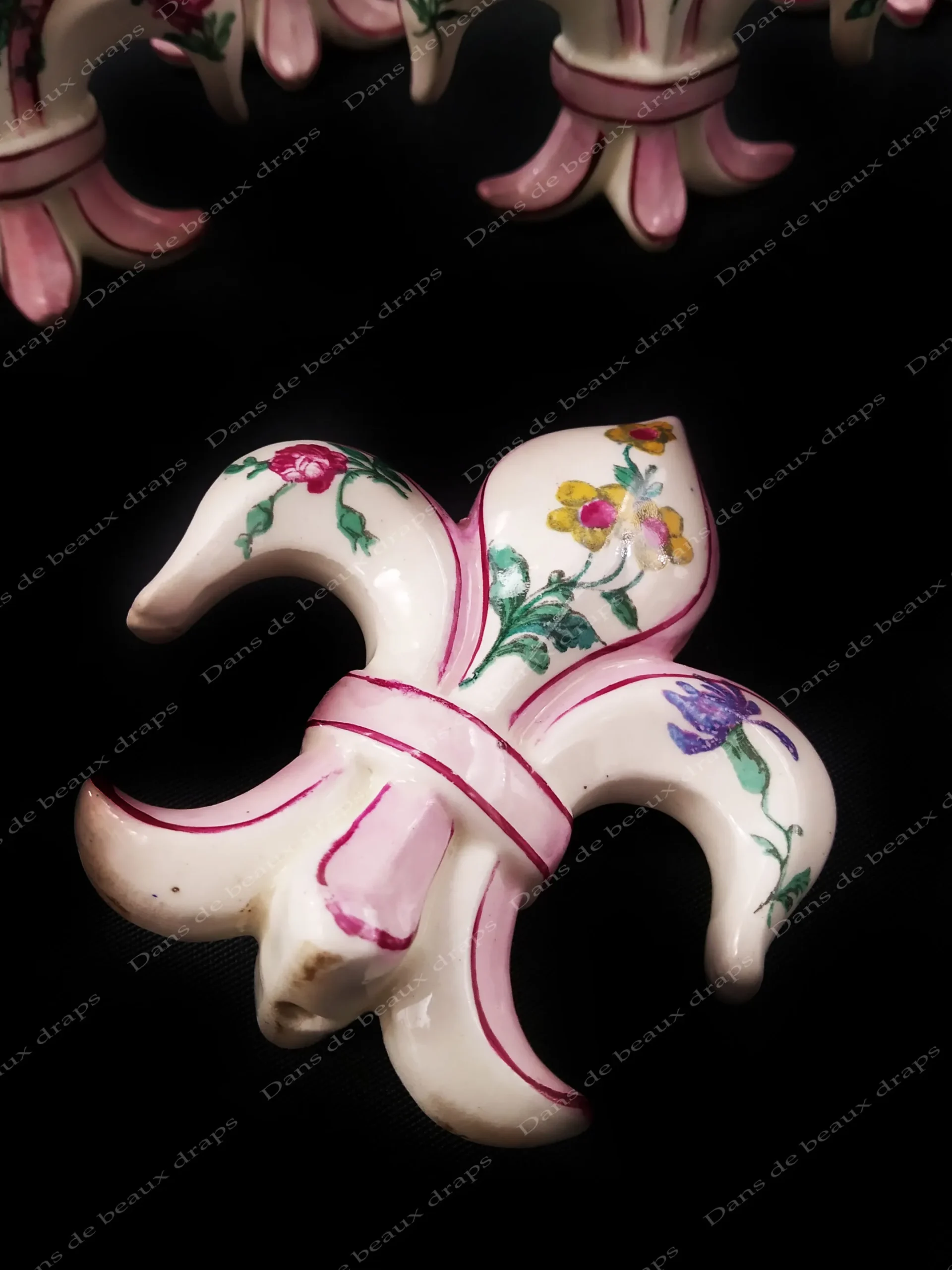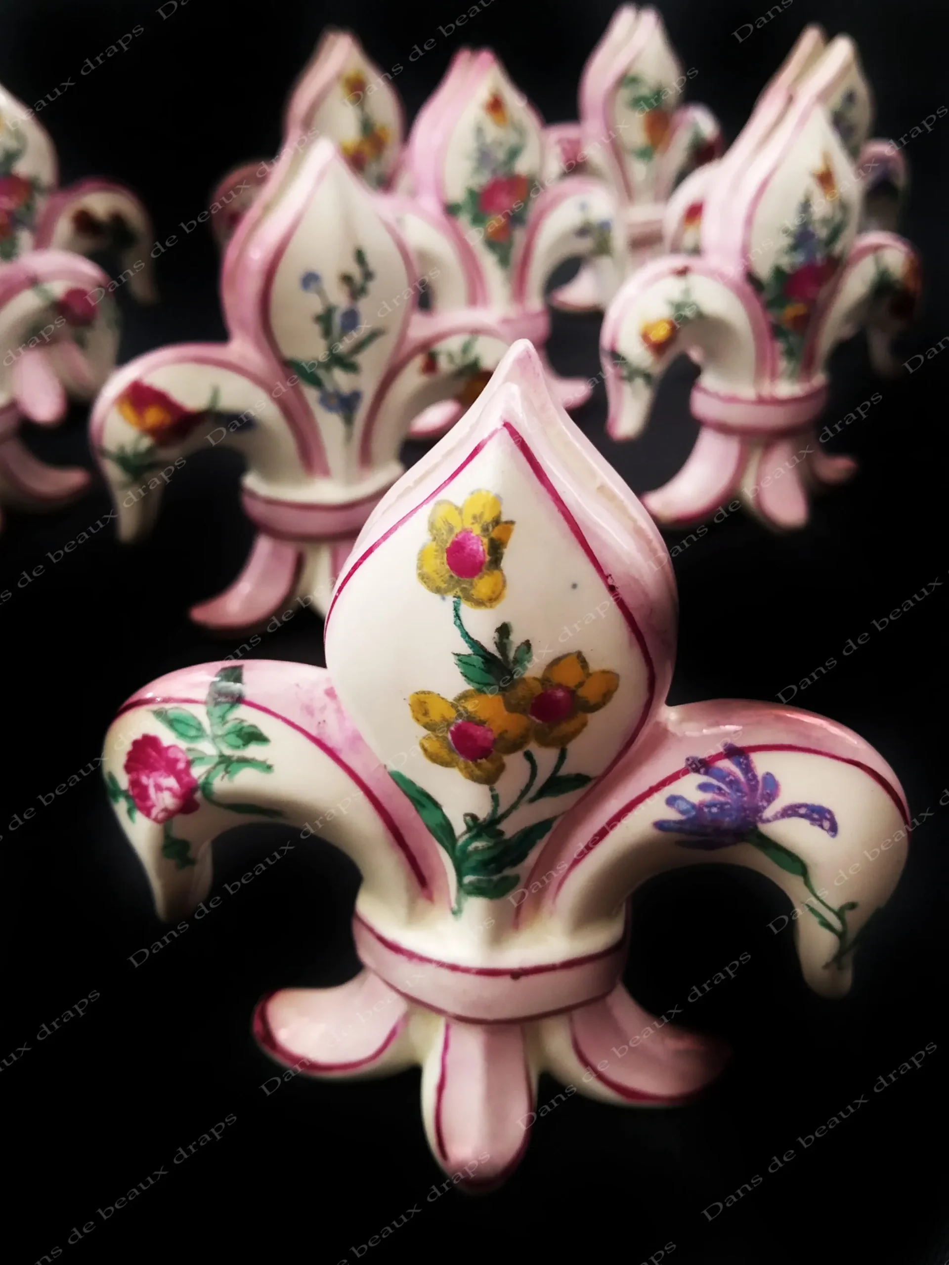 Superbe fleur de lys en camaieu de rose,décor de fleurs et d’insectes tous différent.
