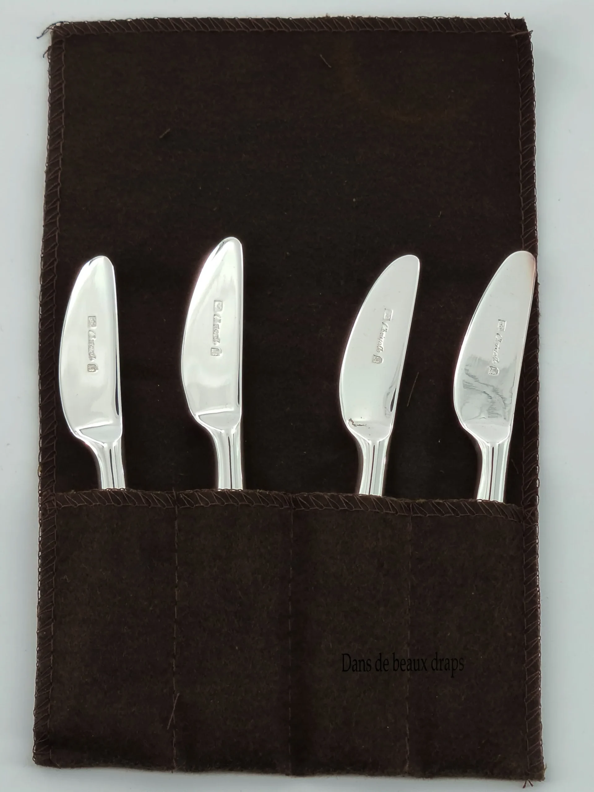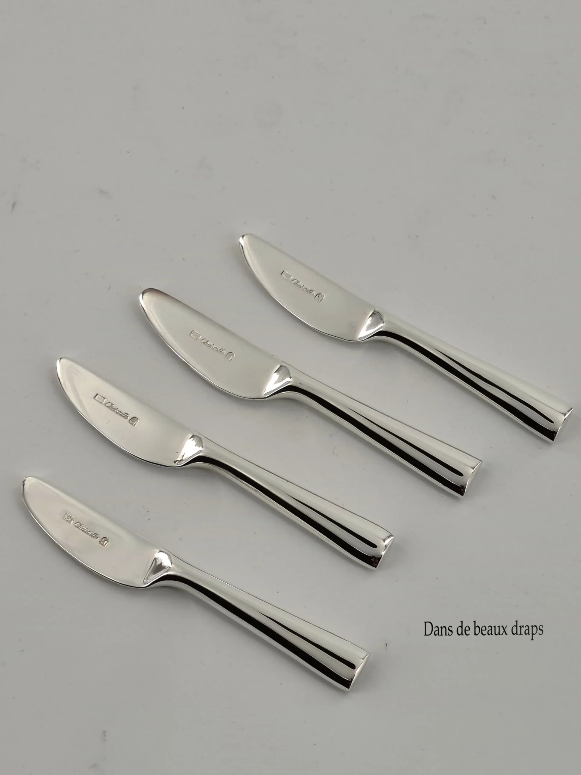 Soyez le premier à laisser votre avis sur “Suite de 4 tartineurs en métal argenté, orfèvre Christofle.”