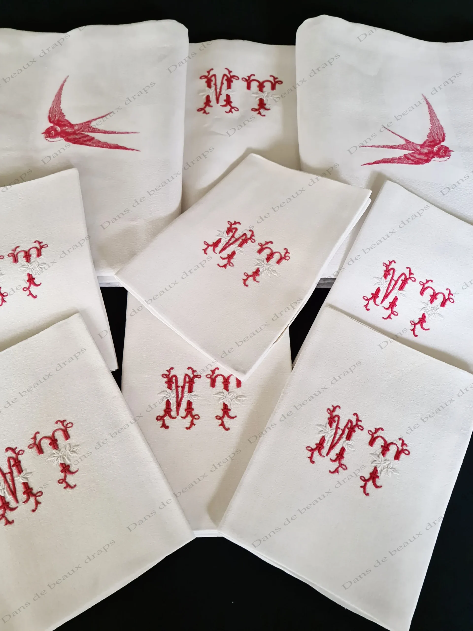Soyez le premier à laisser votre avis sur “Suite de 6 très belles serviettes en damassé de lin monogramme MT.”