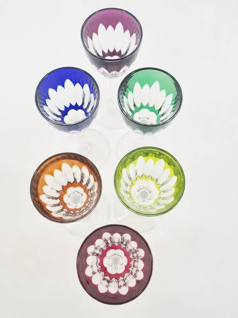 Suite de 6 verres à vin blanc en cristal doublé, Baccarat, modèle Vérone.