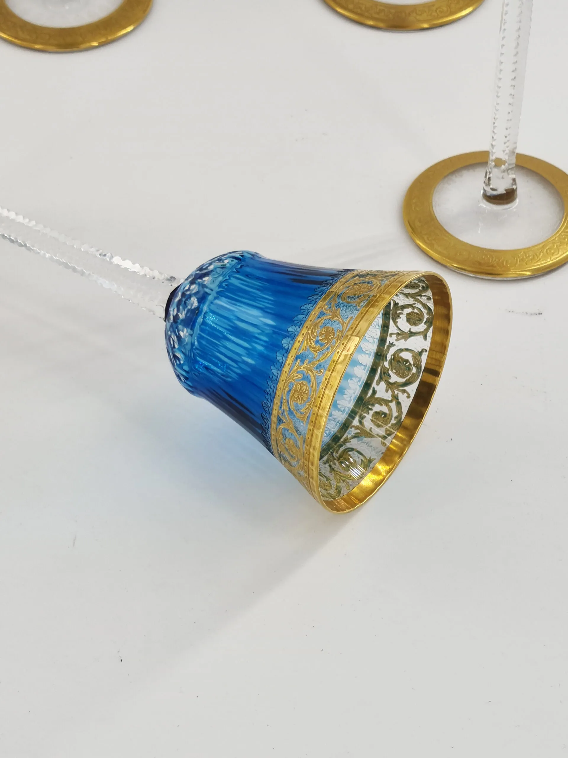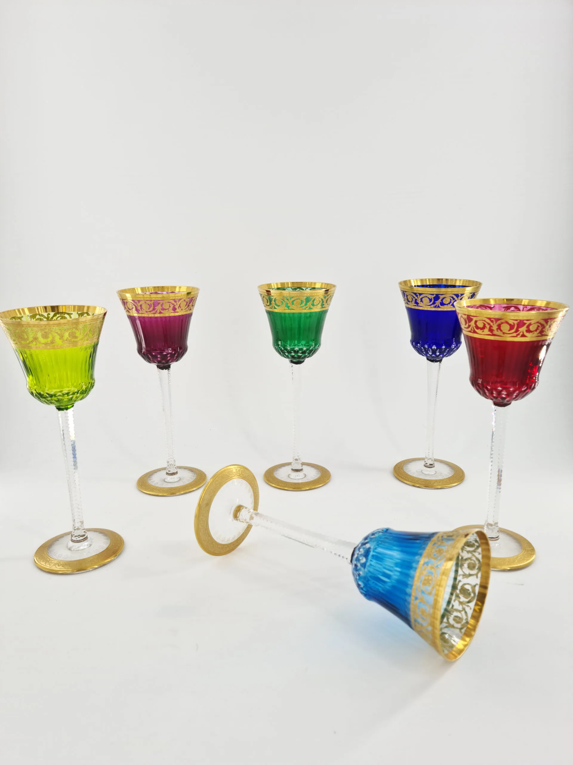 Suite de 6 verres à vin du Rhin en cristal de Saint Louis , modèle Thistle Or.
