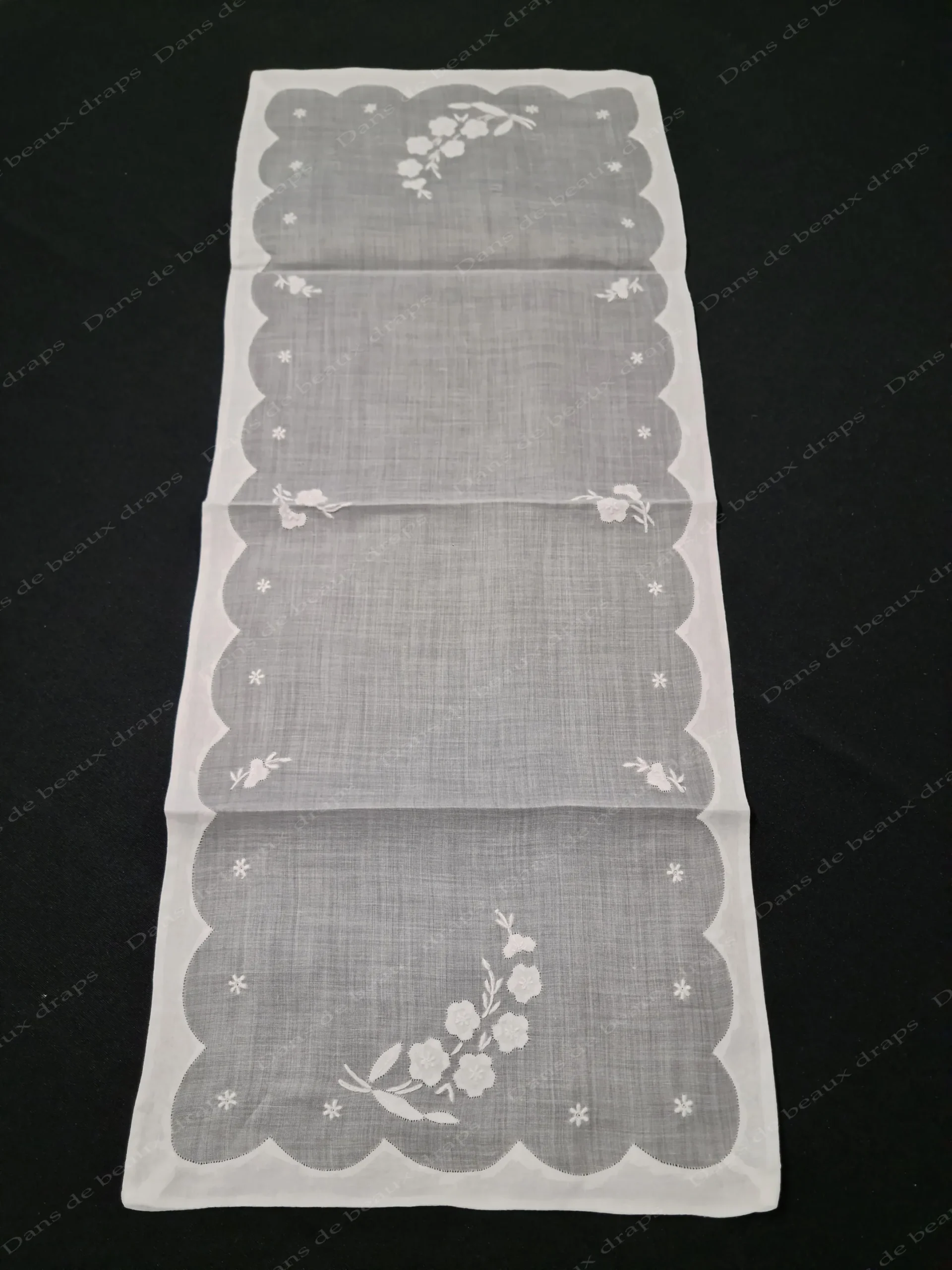 Bordure en lin à décor de vagues,angles cousus main.