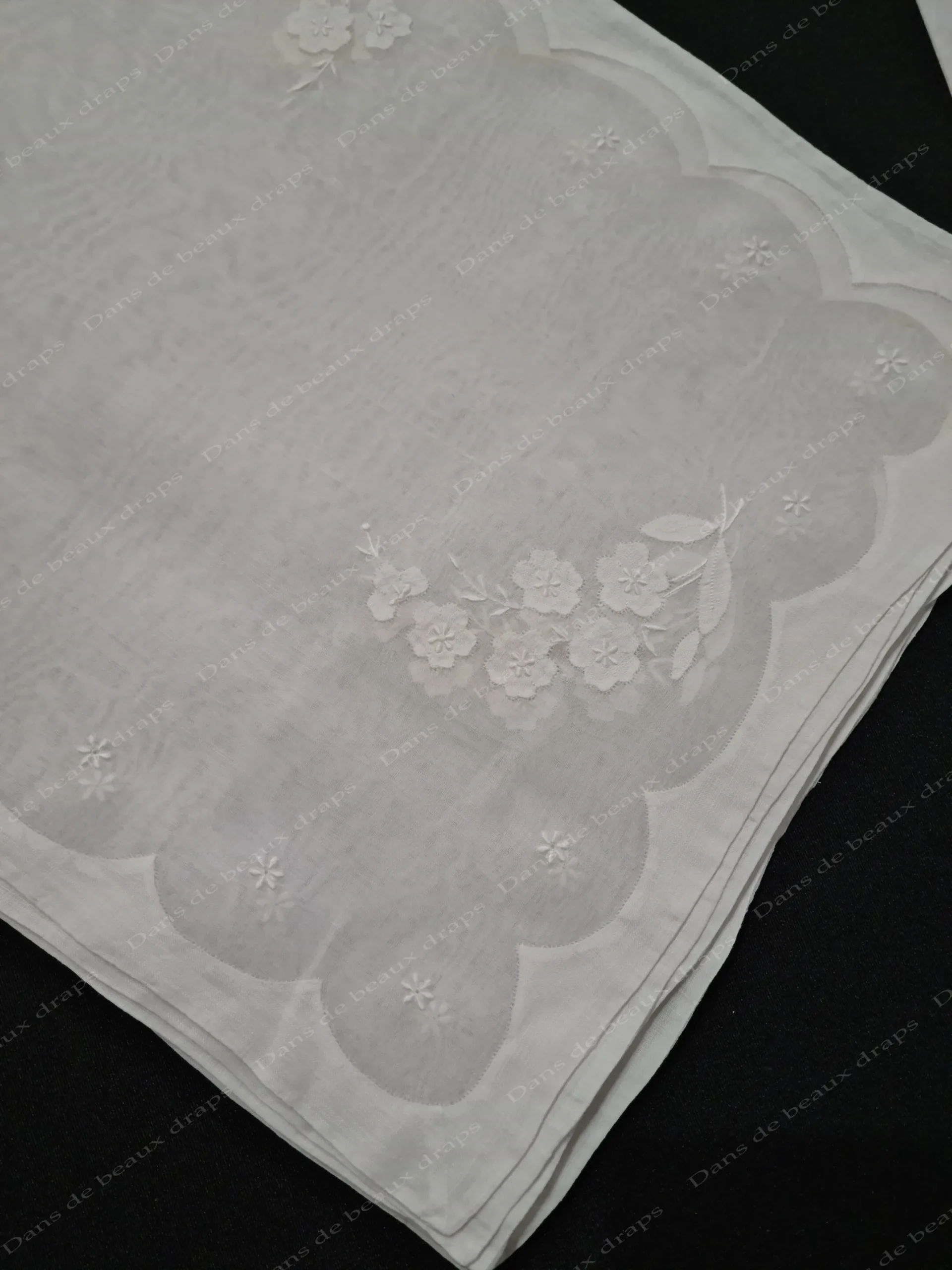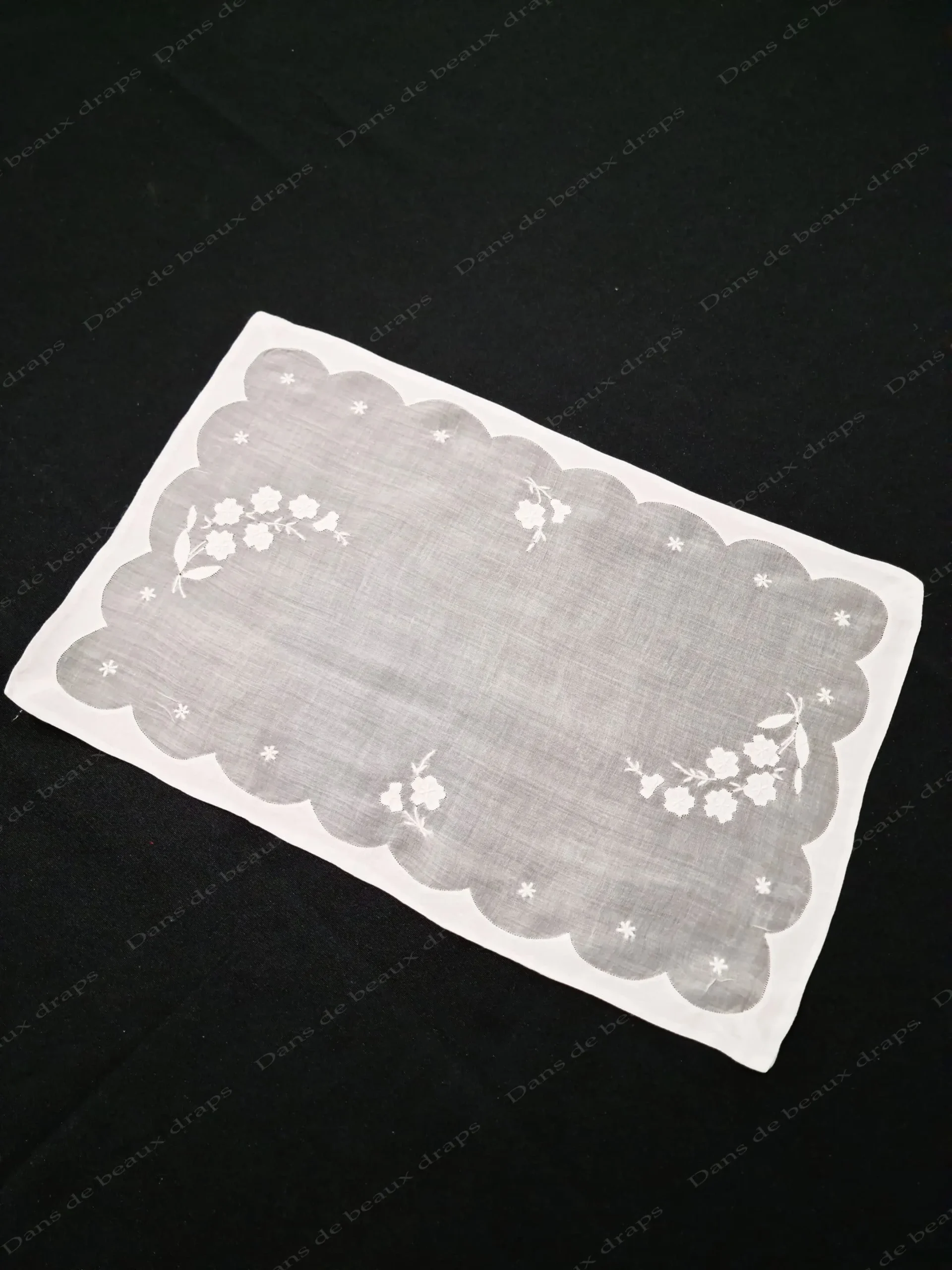 Suite de 8 sets de table et un centre de table assorti en linon .