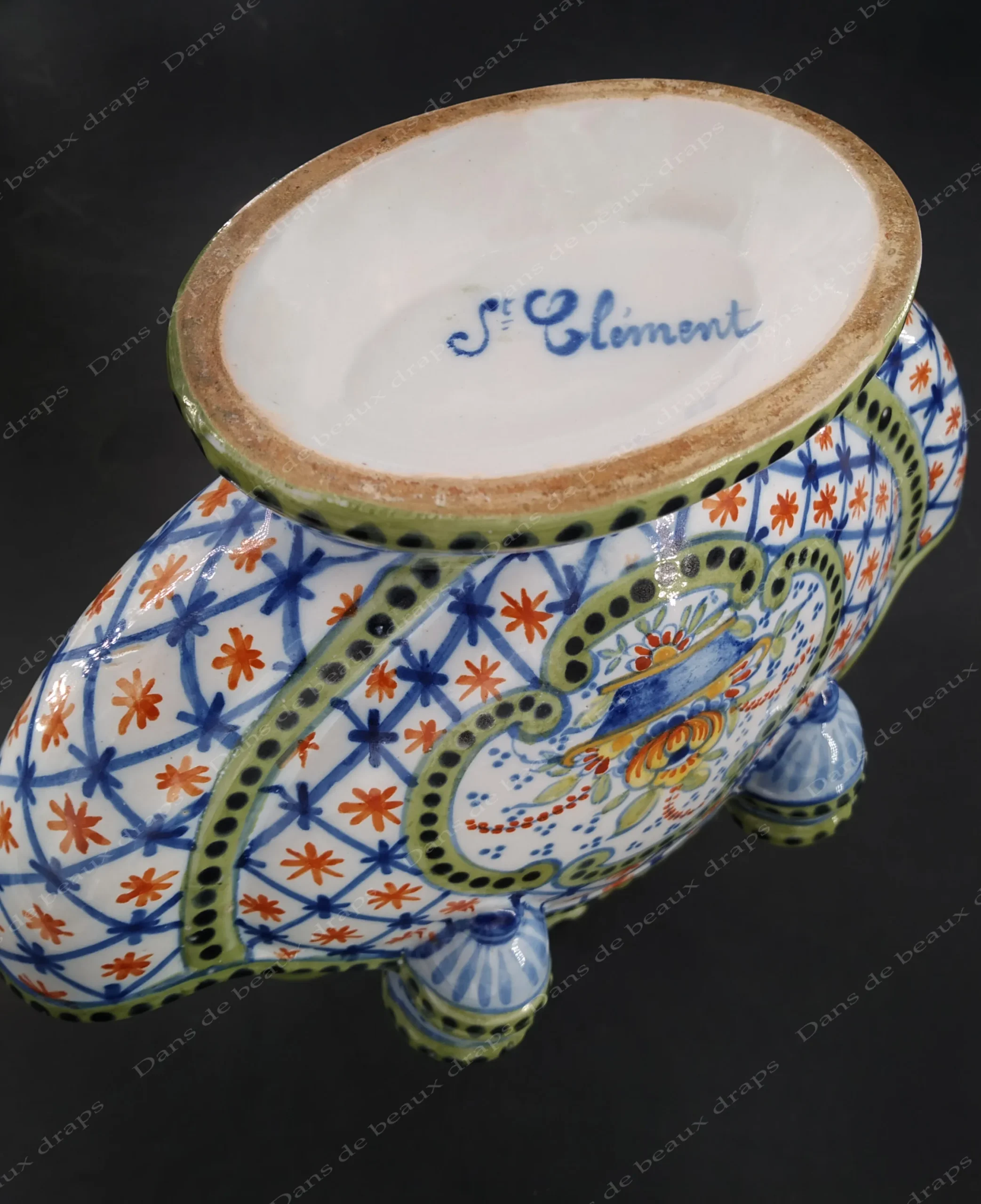 Superbe bouquetière en faïence de St Clément à décor polychrome.