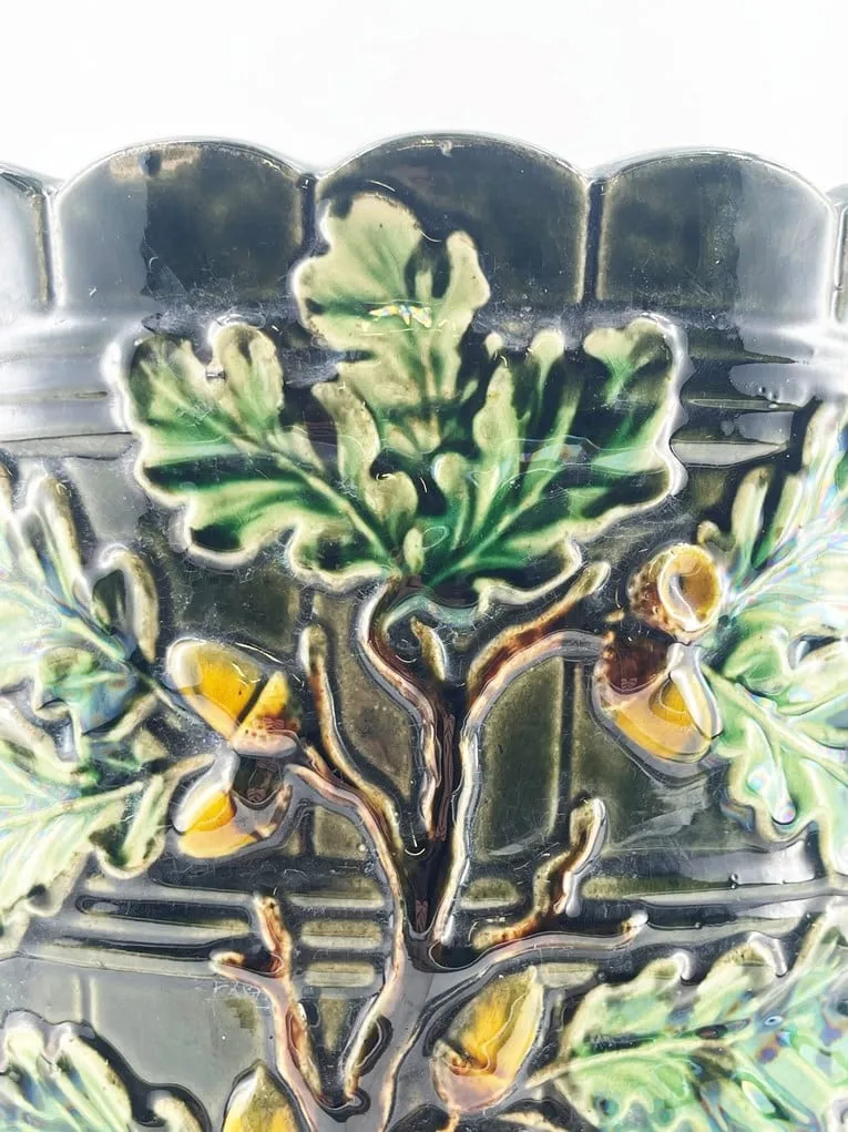 Superbe cache-pot en barbotine fin XIX ème.