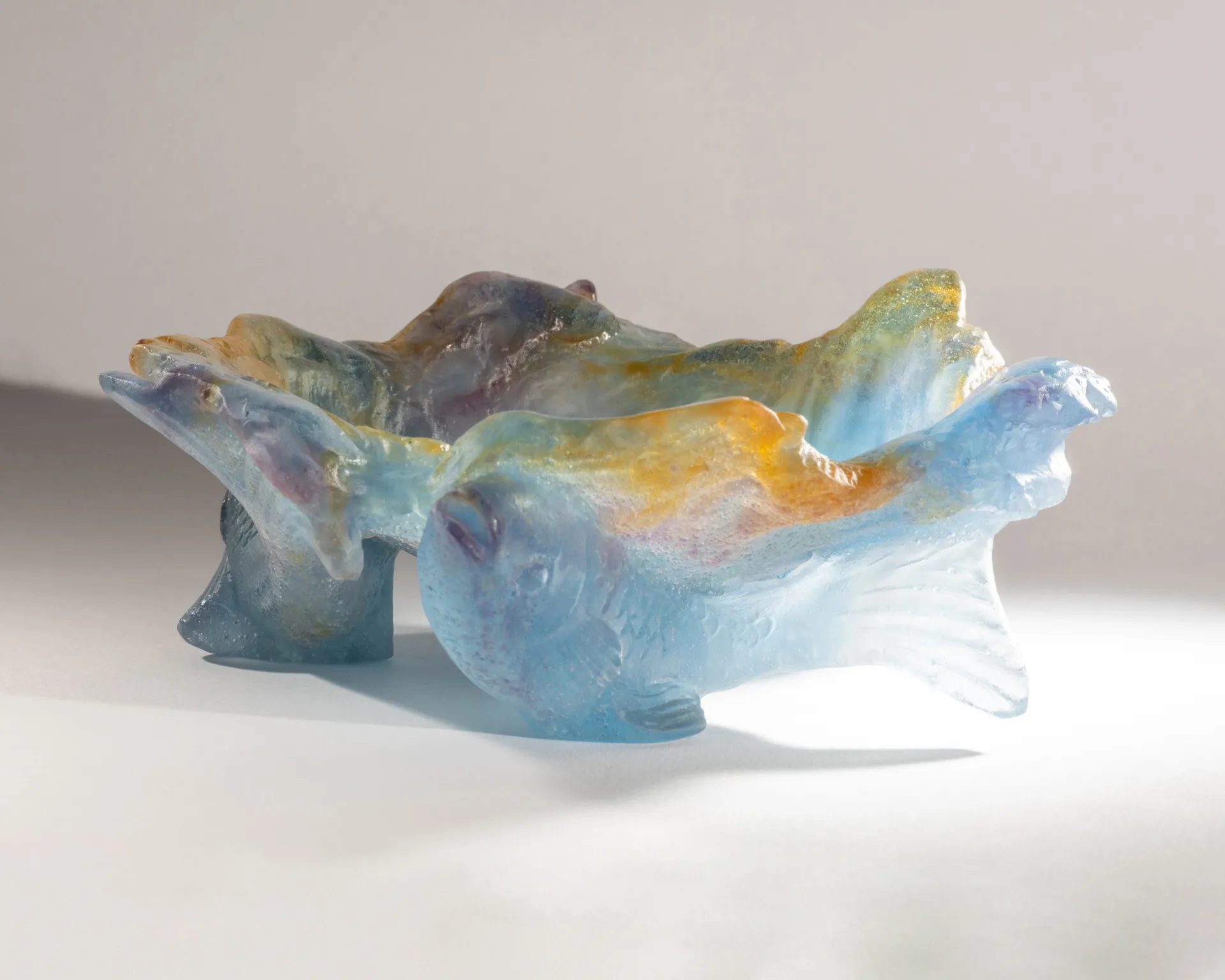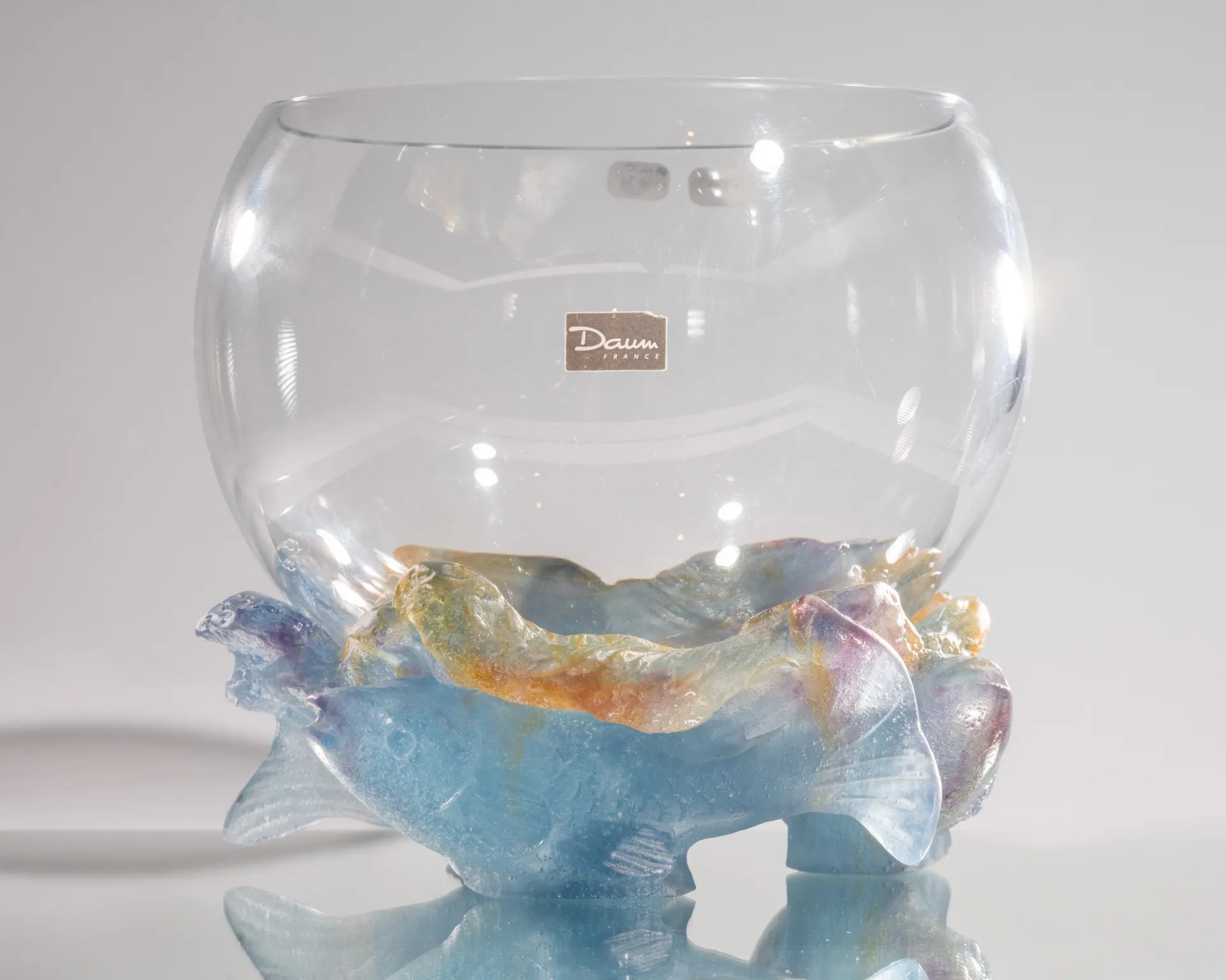 Superbe centre de table en cristal de Daum à décor de poissons.