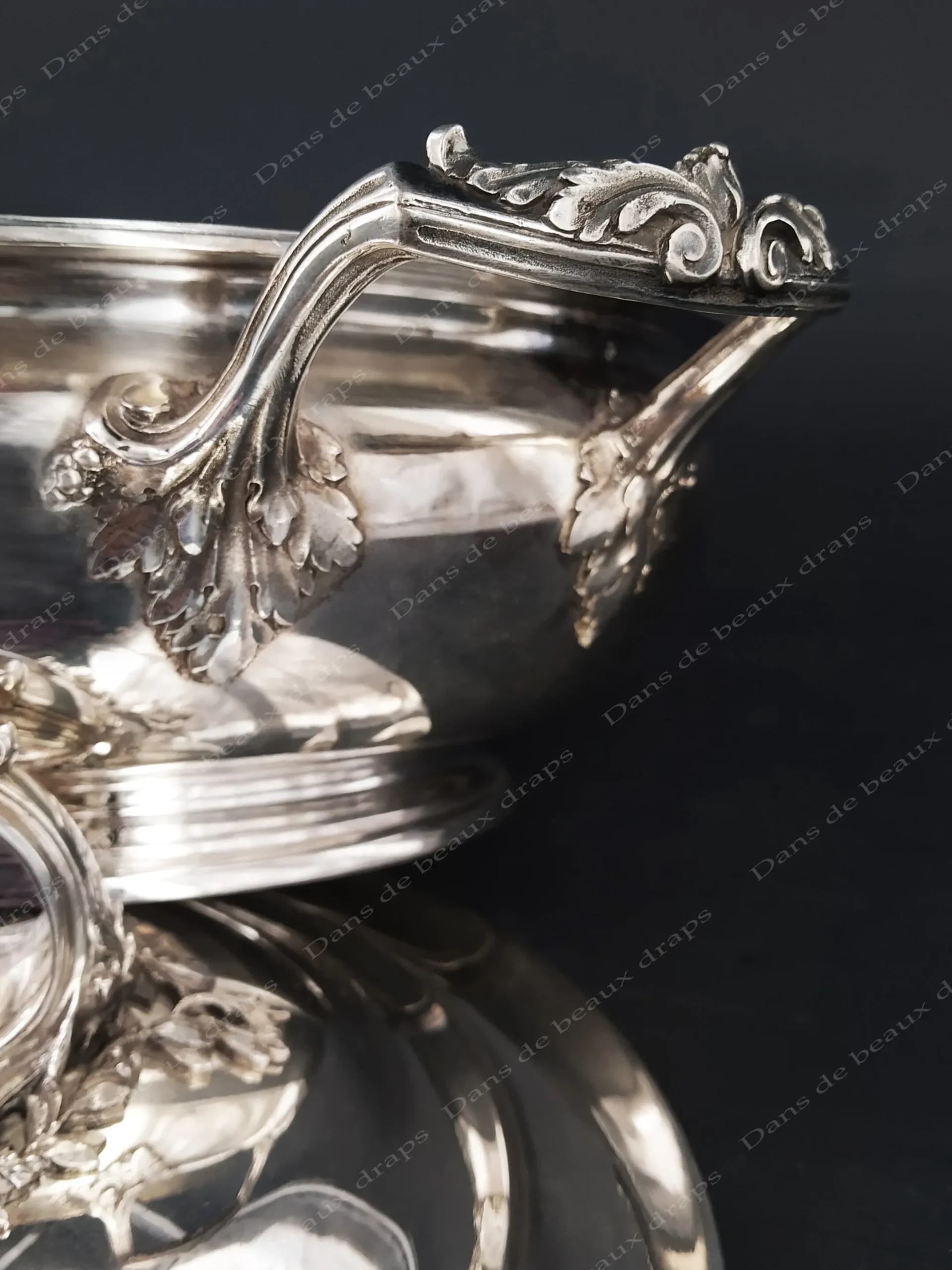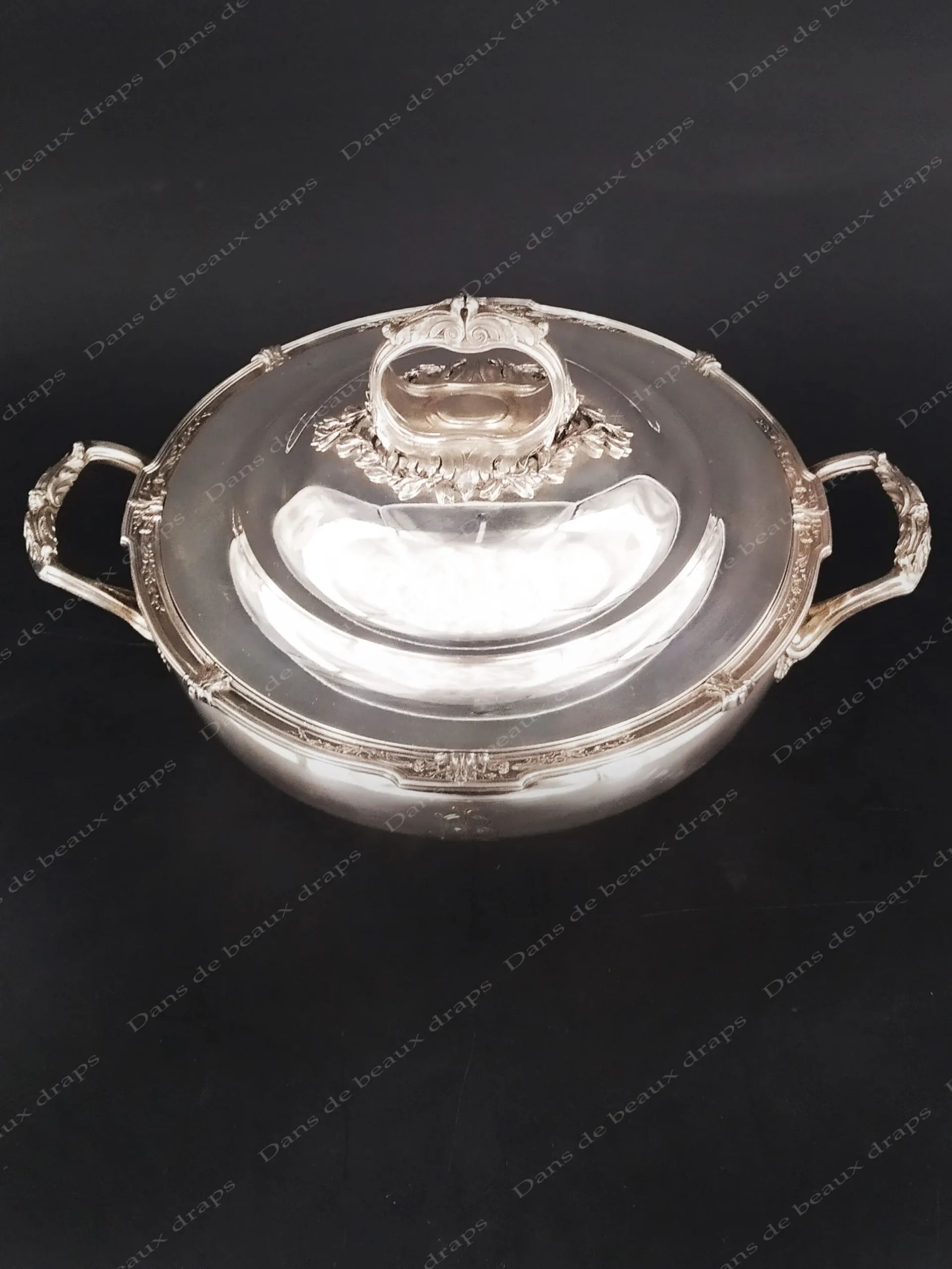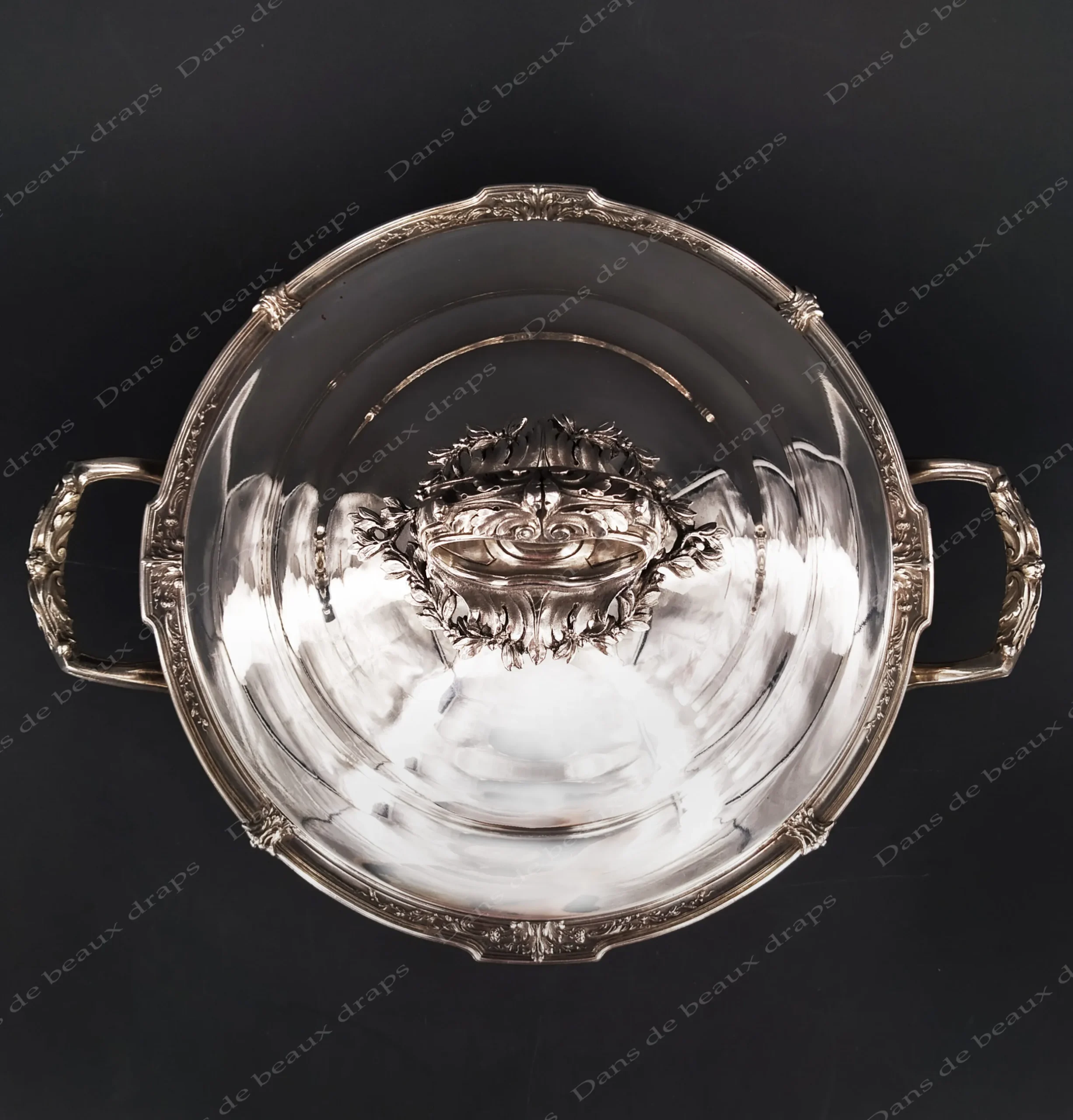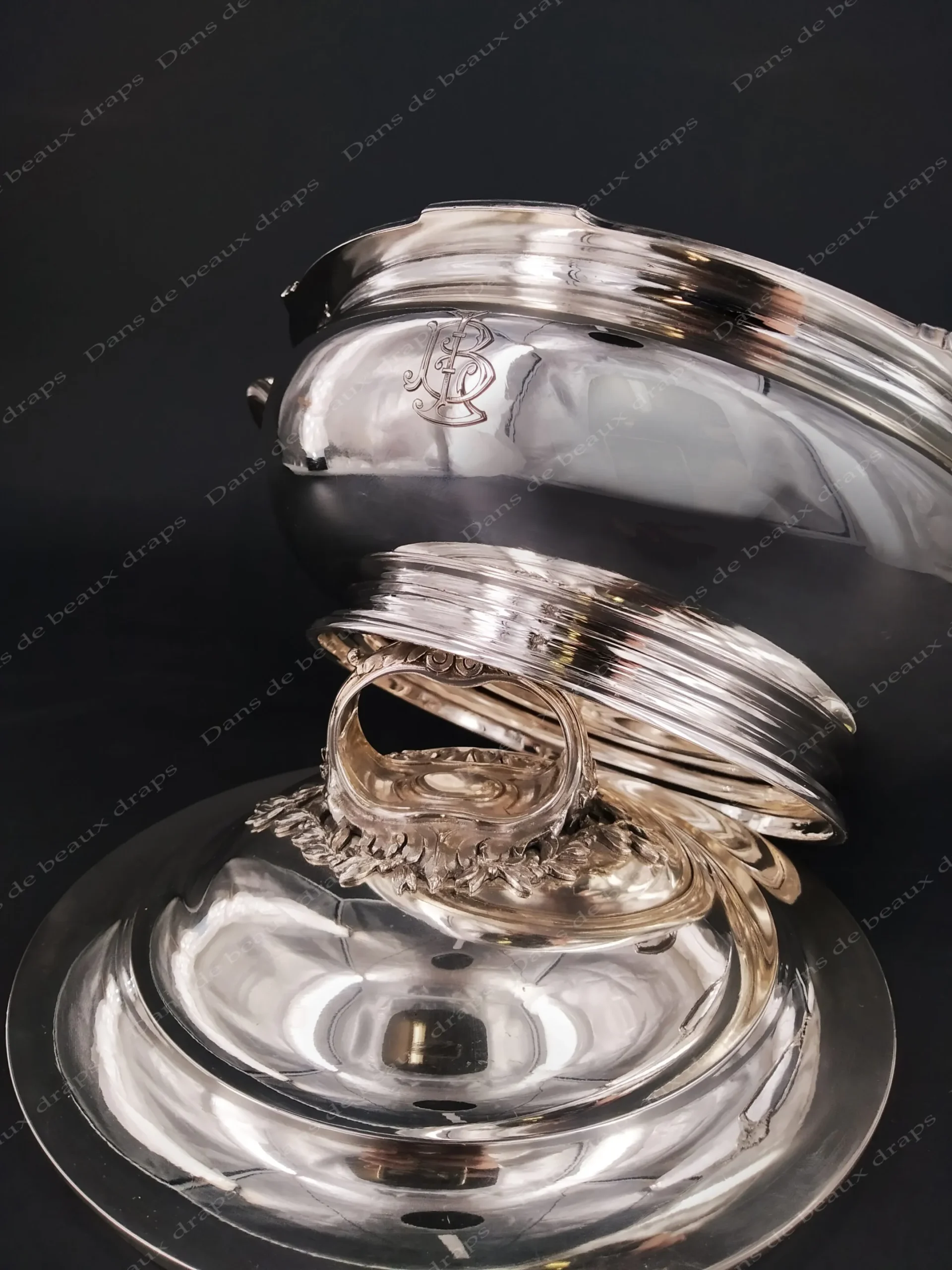 Superbe légumier en argent,poinçon mercure,monogramme LB,fin XIX ème.