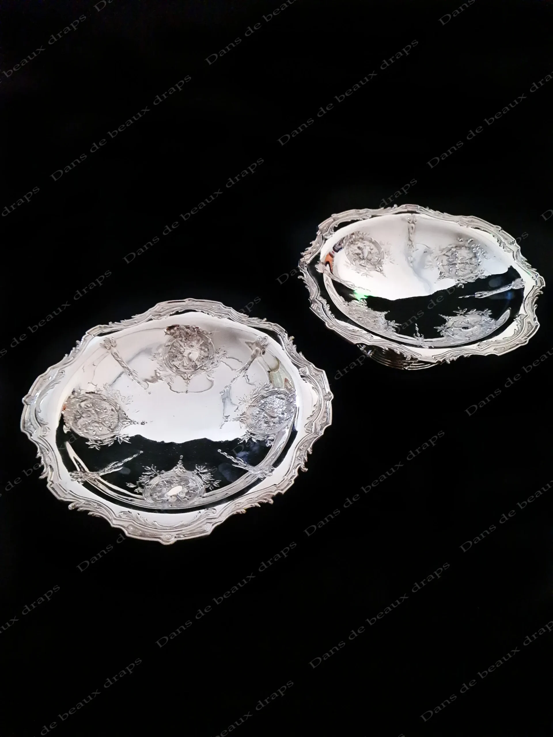 Paire de présentoirs en métal argenté de forme libre et sur piédouche,fin XIX ème.