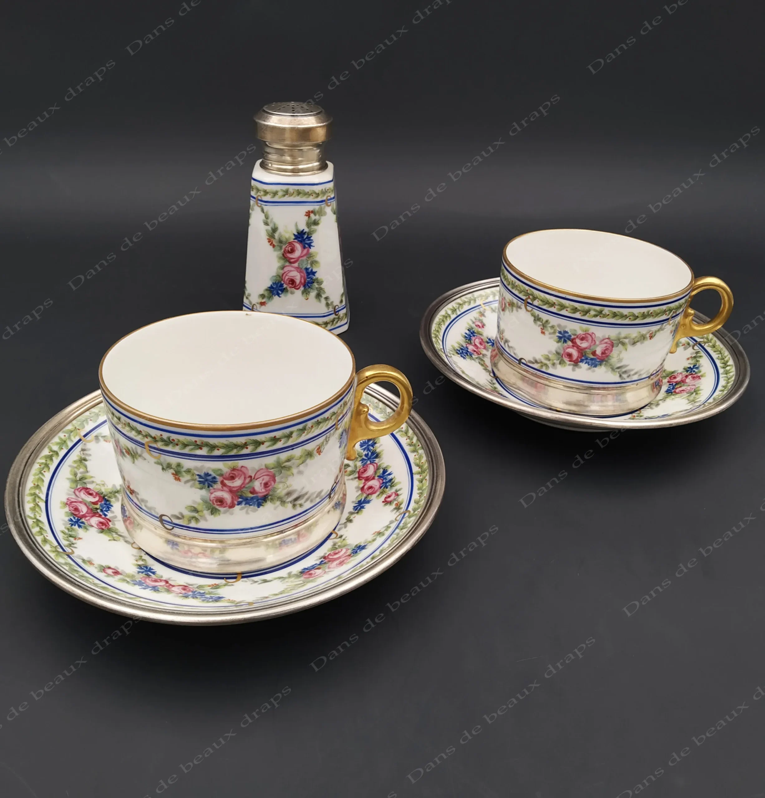 Superbe saupoudreuse en porcelaine de Limoges et argent.