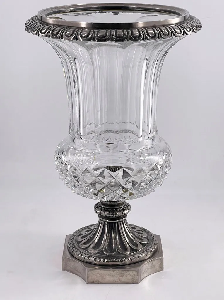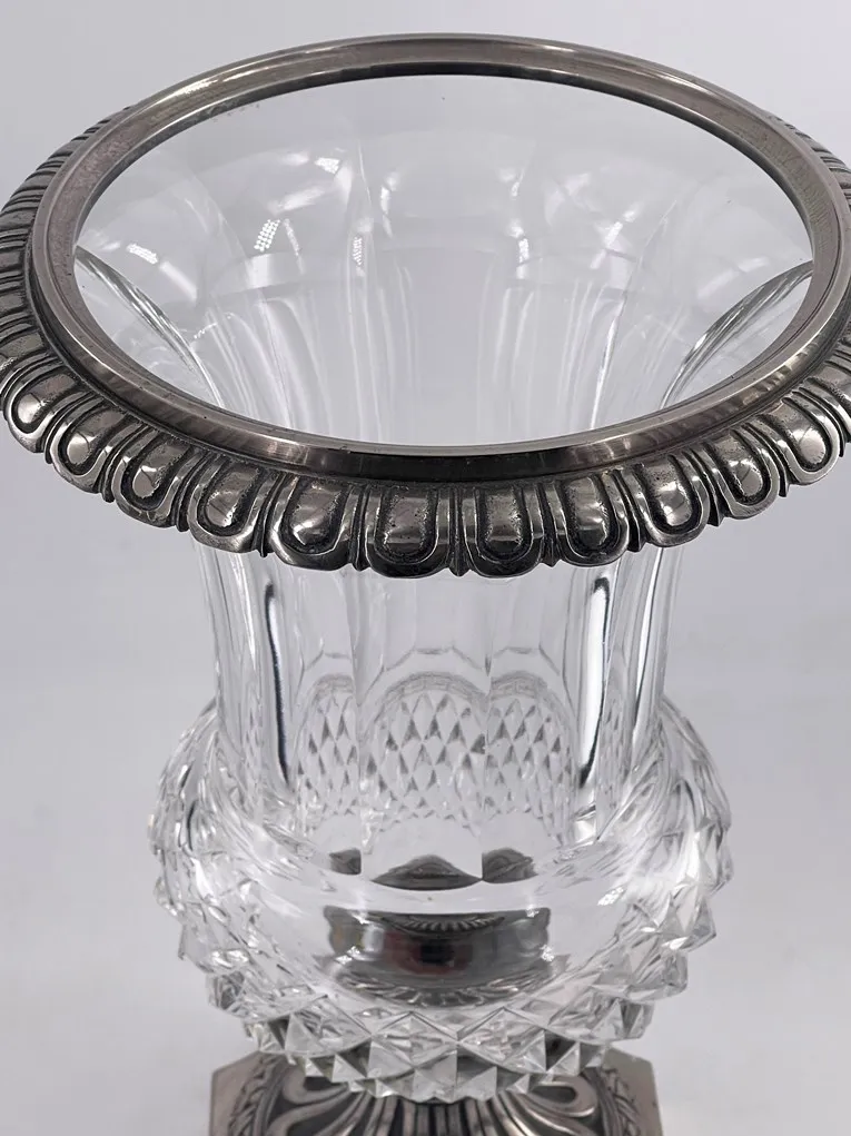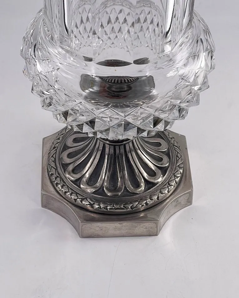 Très beau vase en cristal et bronze argenté, cristalleries de Saint Louis, fin XIXème.