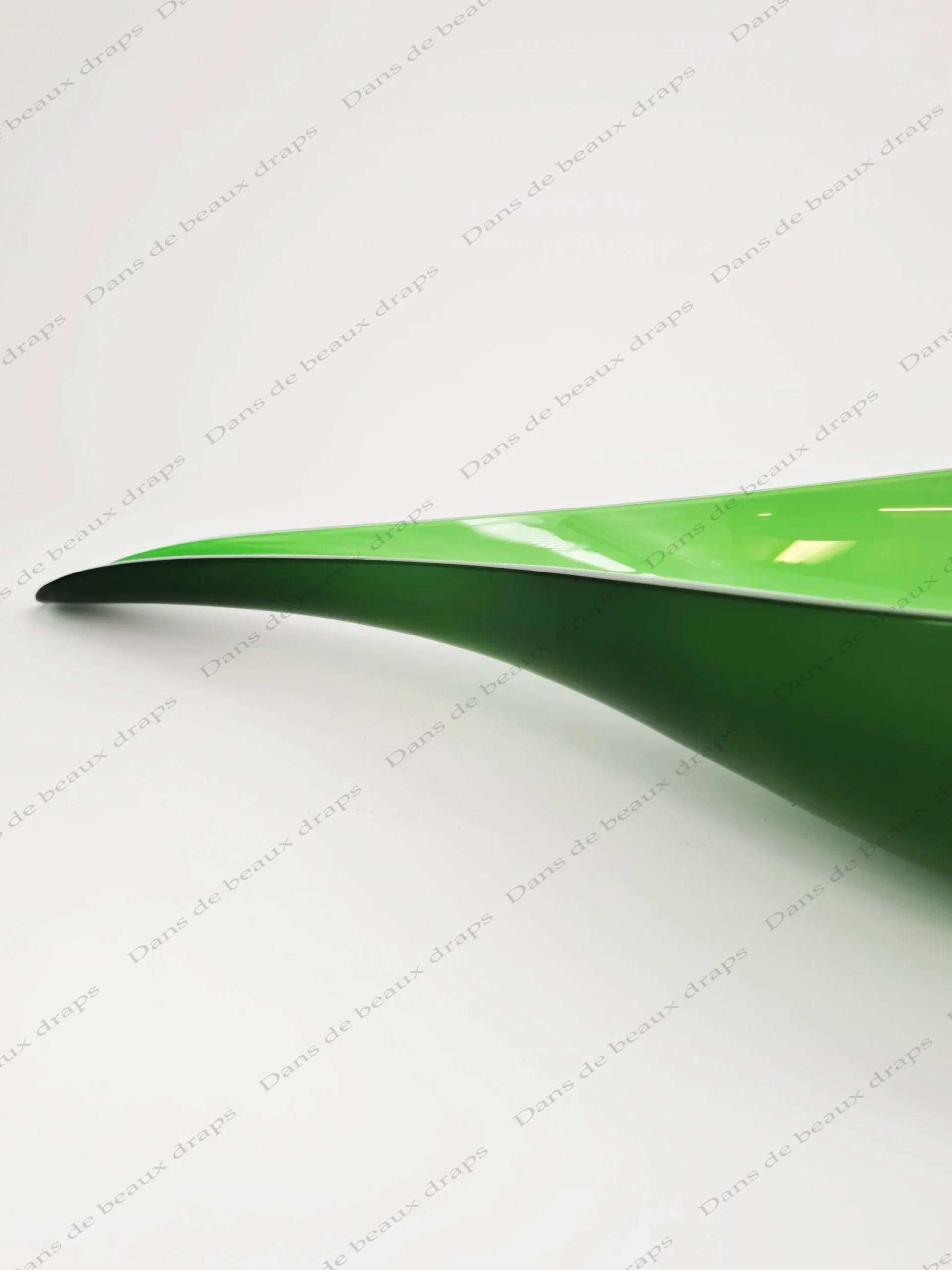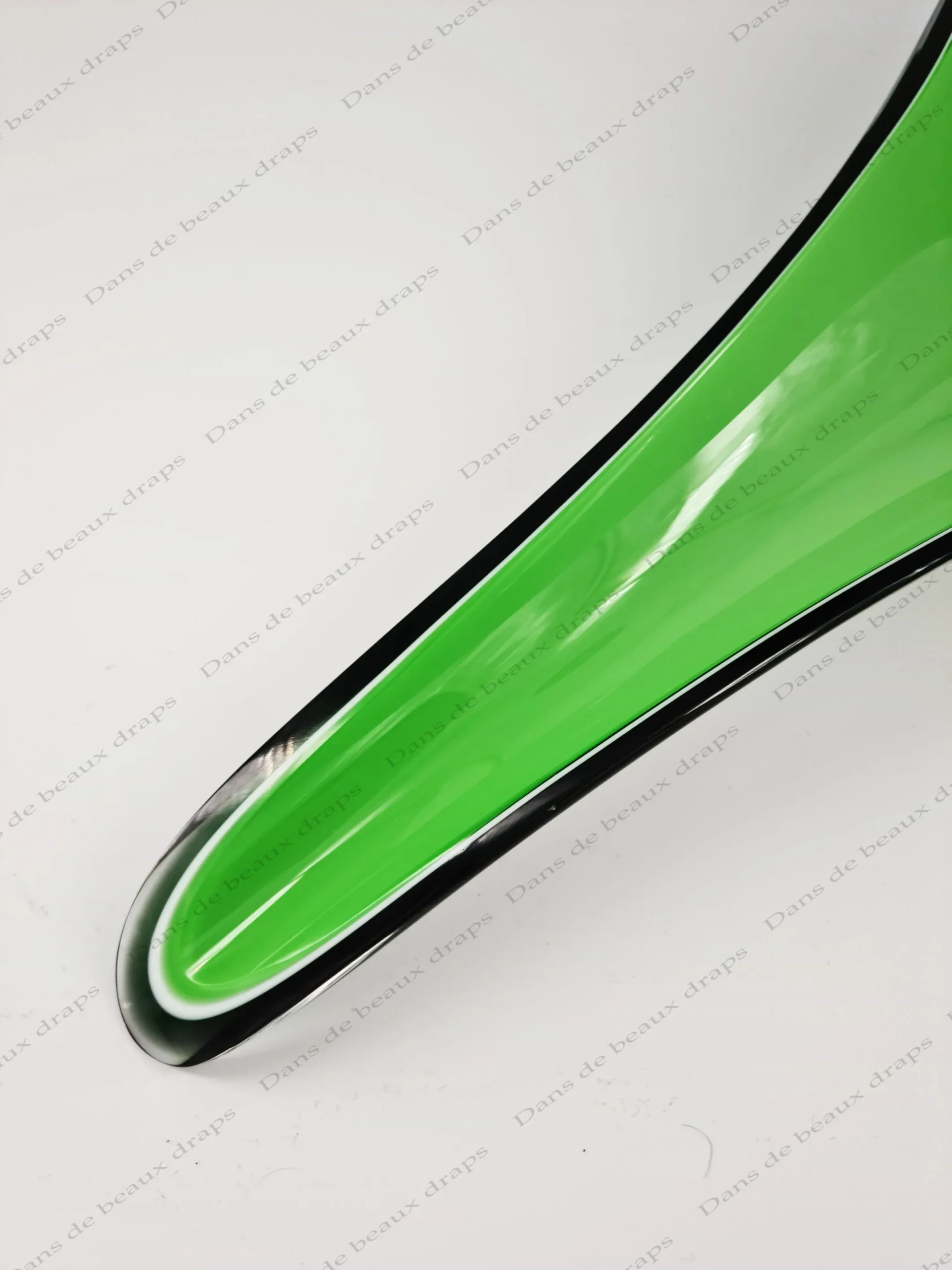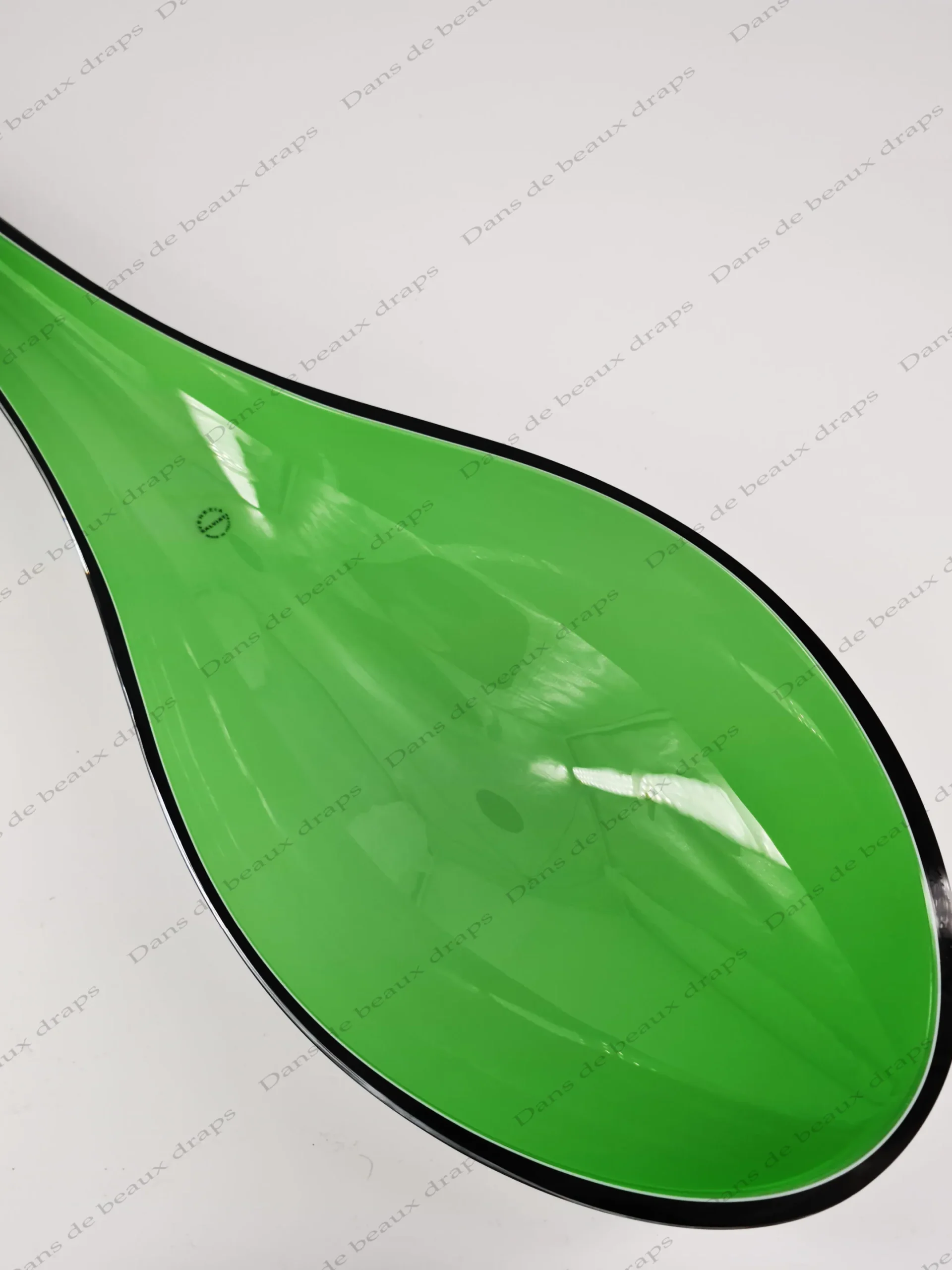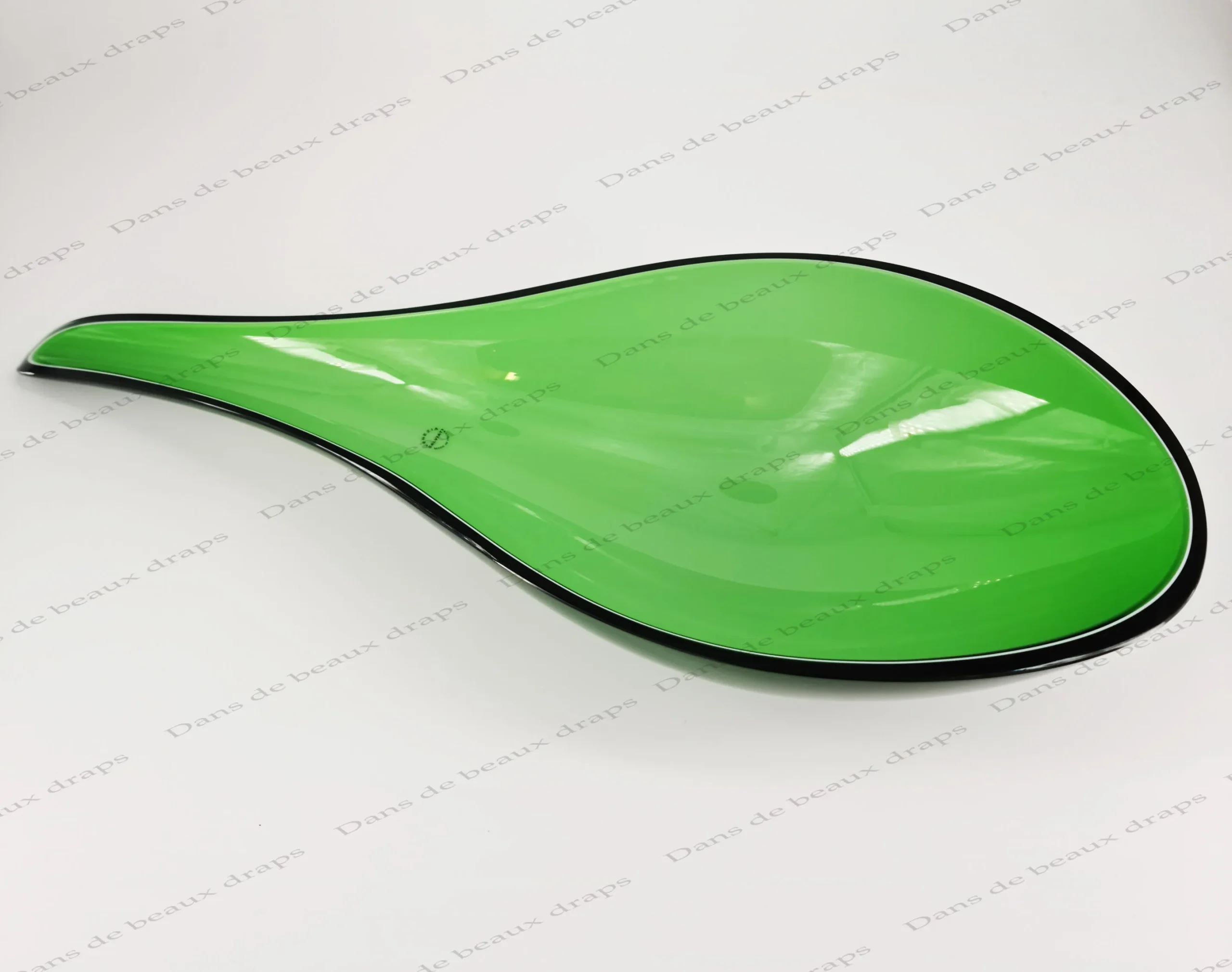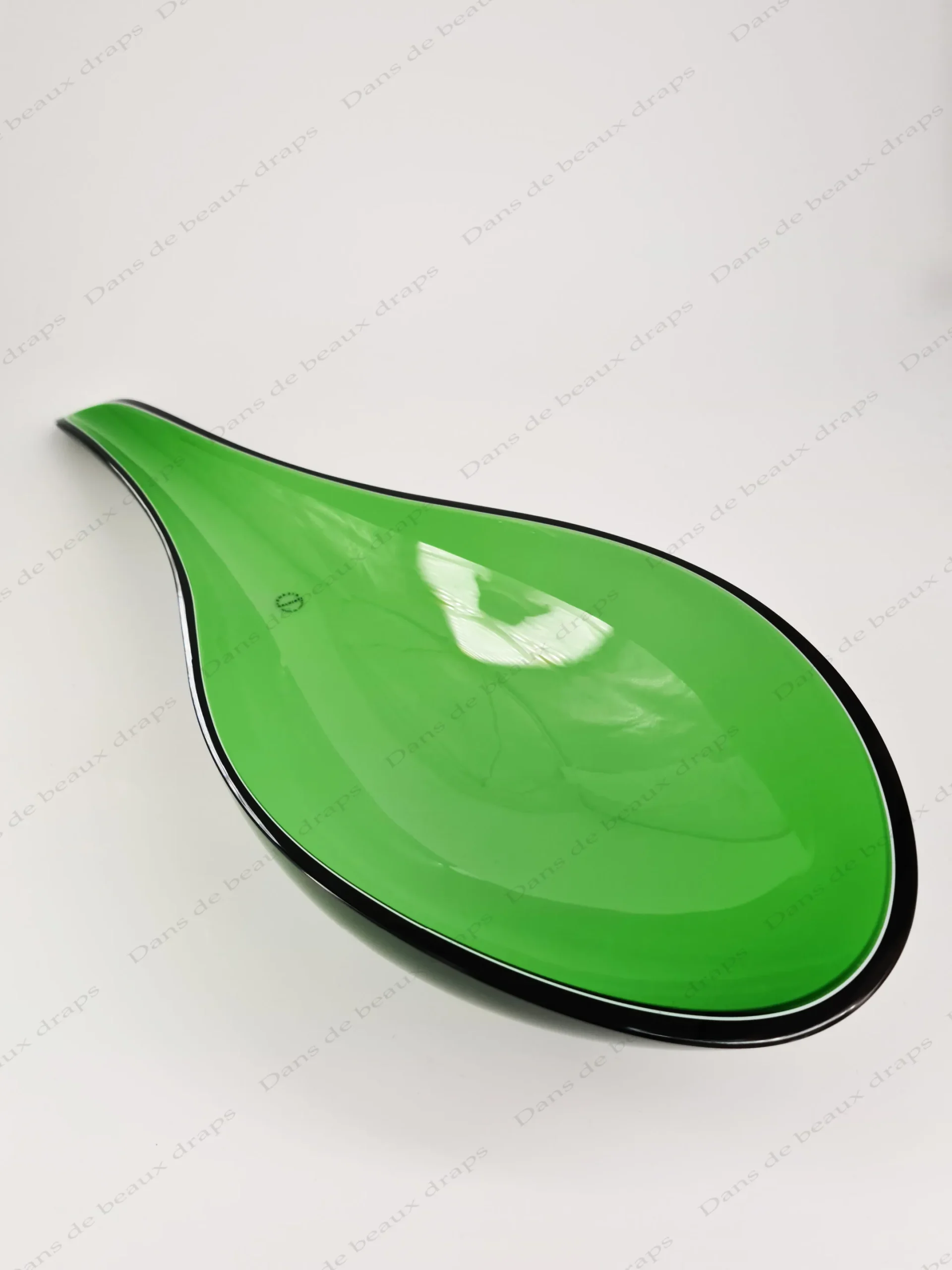 De couleur verte,bord noir,à l’imitation d’une feuille.
