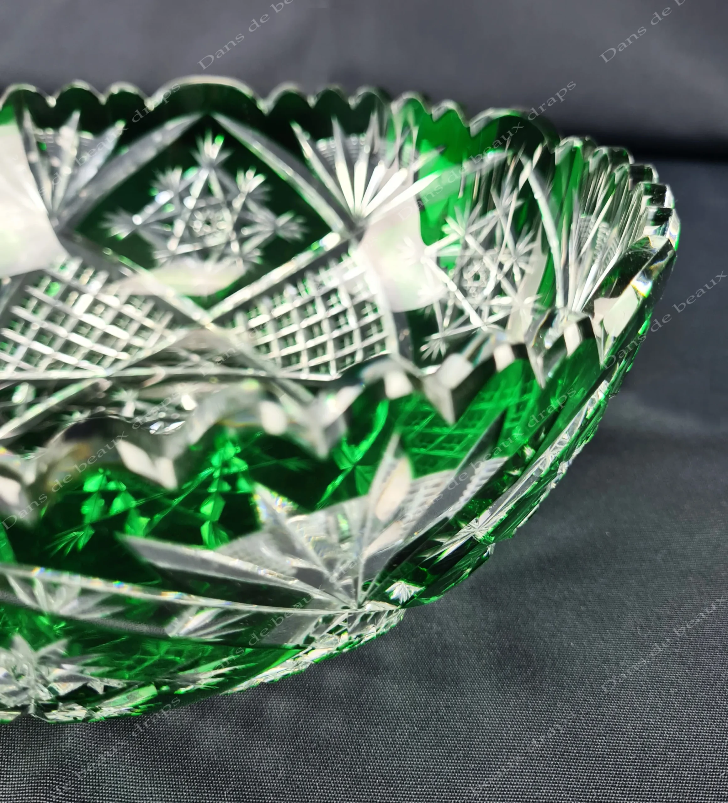 Très belle coupe en cristal de Baccarat modèle Lagny de couleur verte.