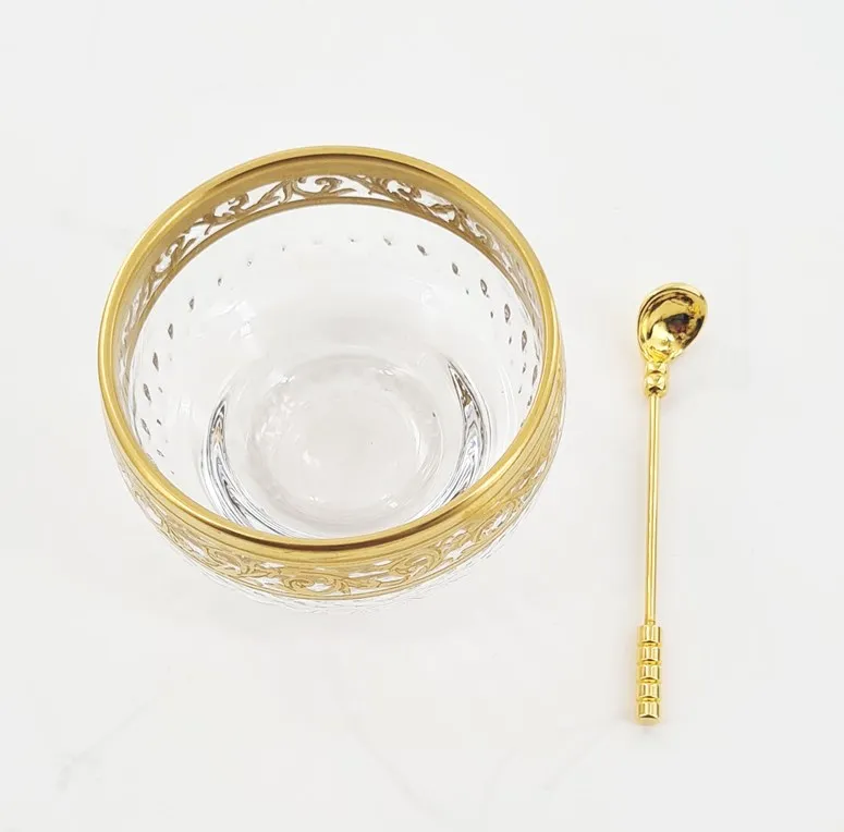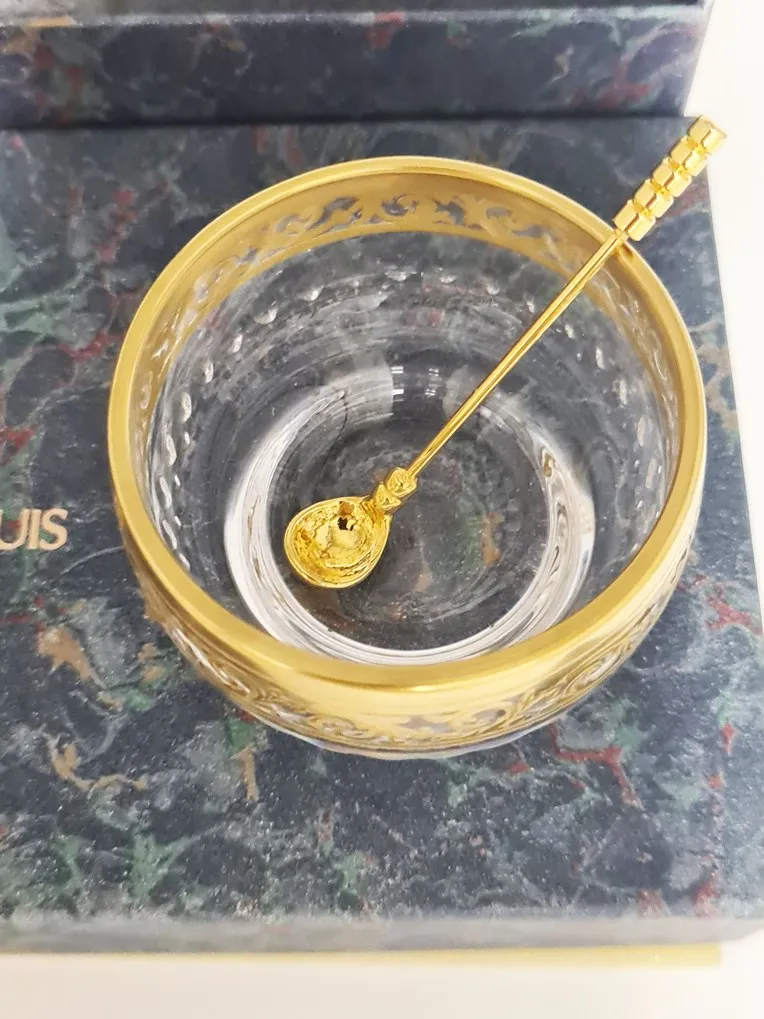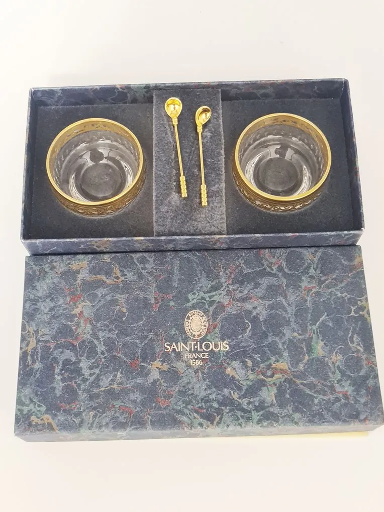 Très belle paire de salerons et ses pelles à sel en cristal de Saint Louis, modèle Thistle.