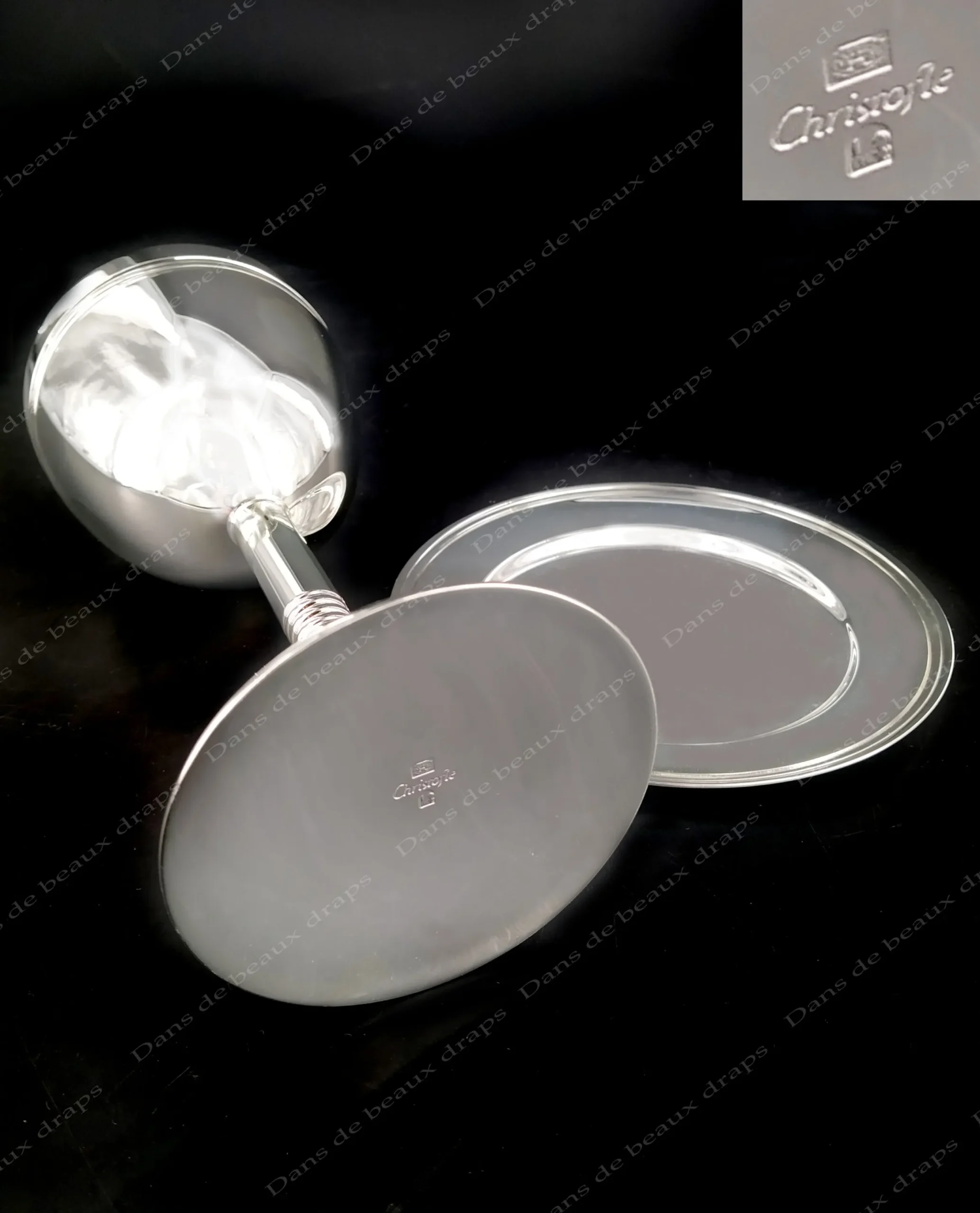 Verre à kiddouch et sa soucoupe en métal argenté,orfèvre Christofle,Paris.