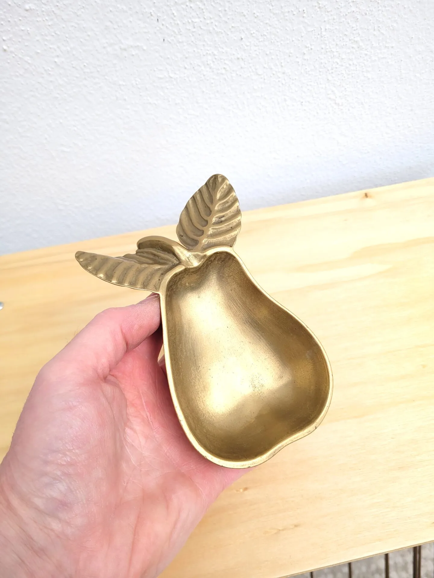 Joli vide poches, c’est une poire en laiton doré.